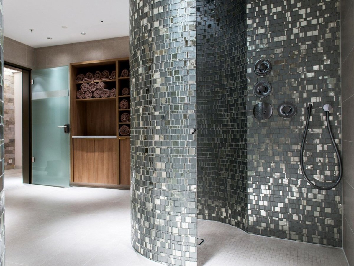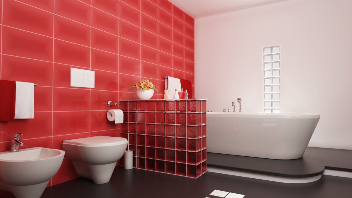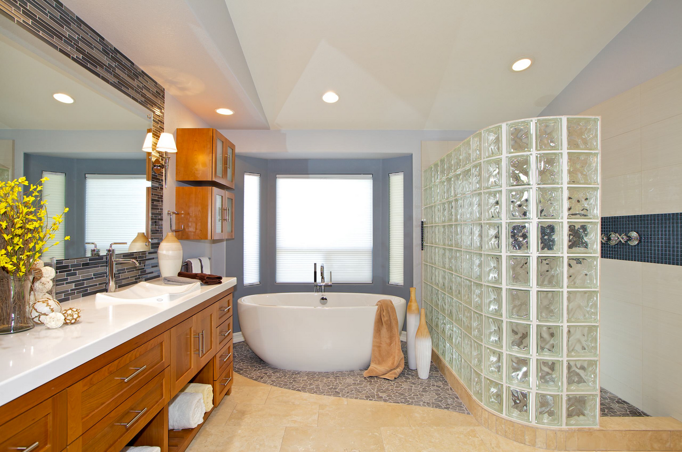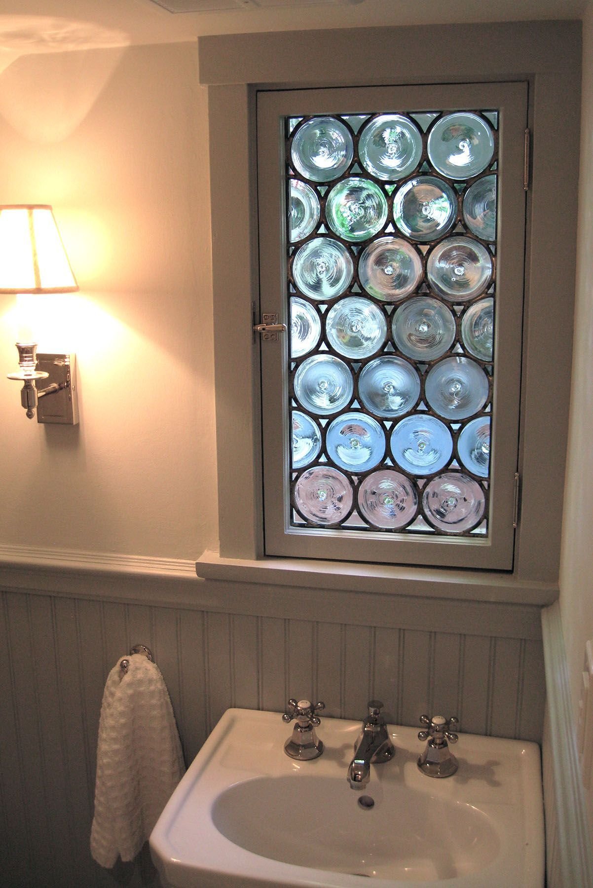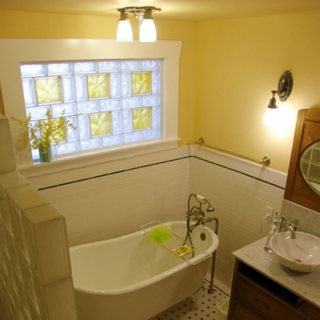 Ванная с зеленой стеной стеклянными БЛОКАМИ