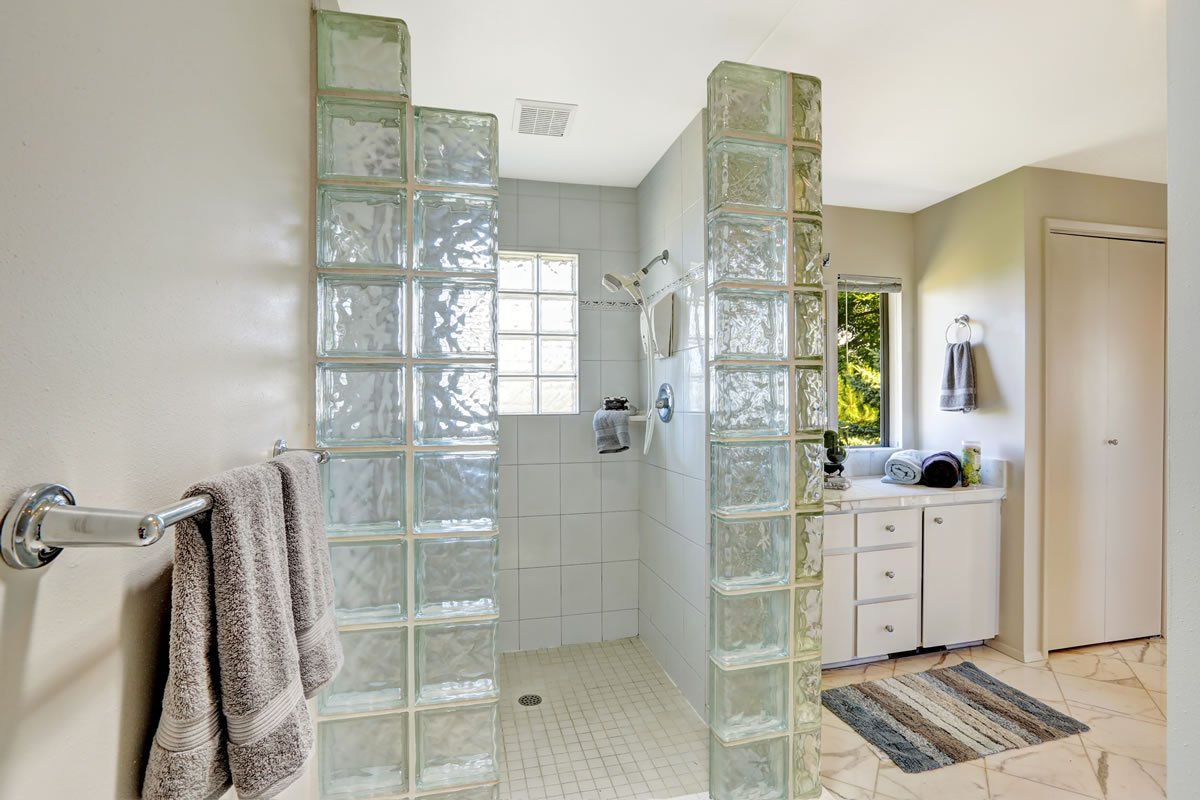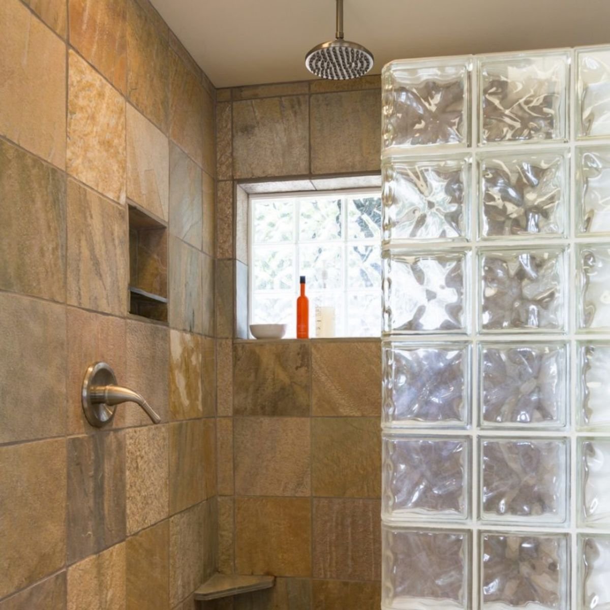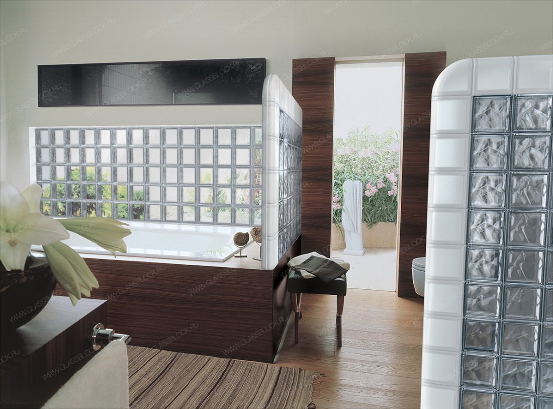Стеклянные блоки для перегородок и душевых кабин в Леруа