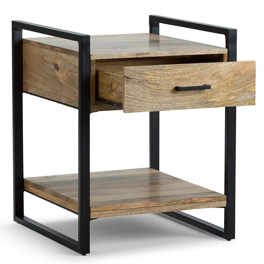 Тумбочка Patrick Rustic Antique Brass Oak Wood Nightstand