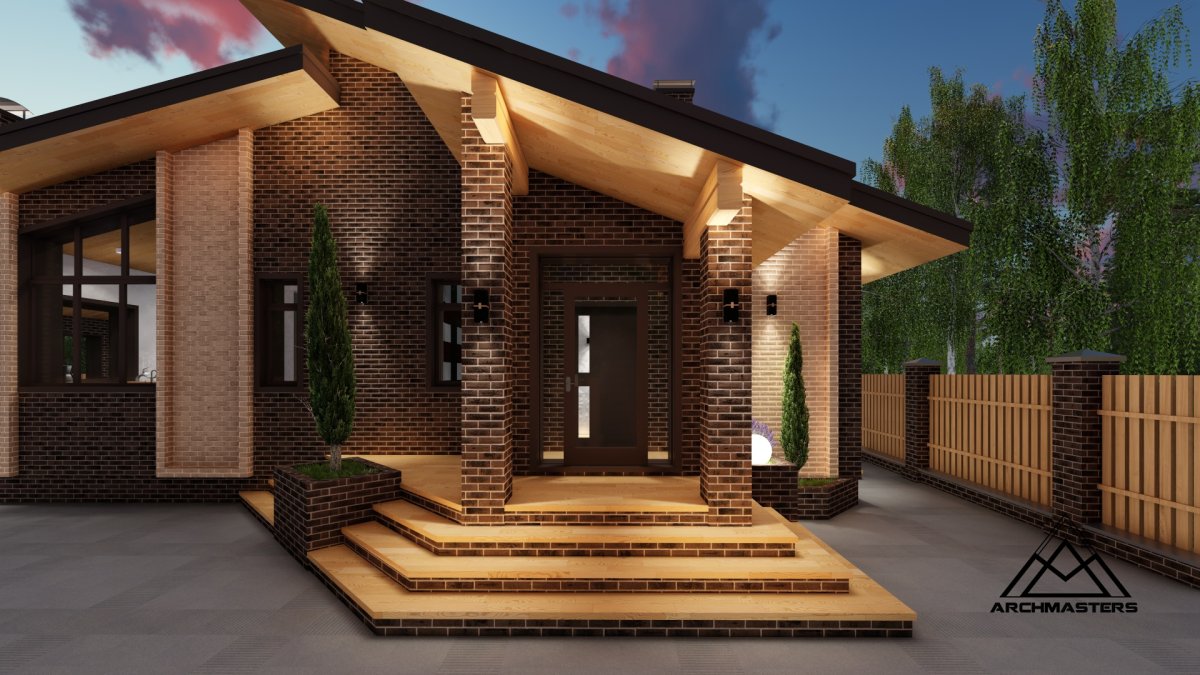 Одноэтажный дом 100кв м дерево кирпич отделка