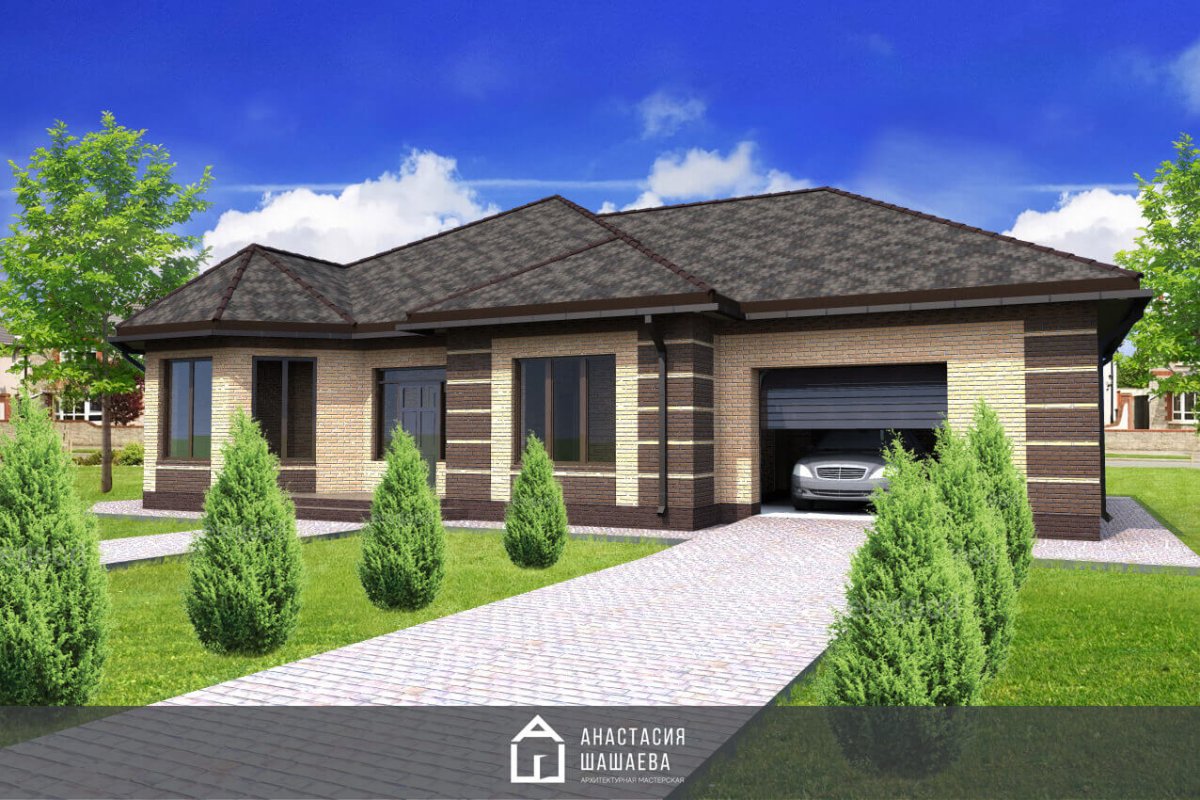 Одноэтажный дом 200кв с террасой и гаражом 2021