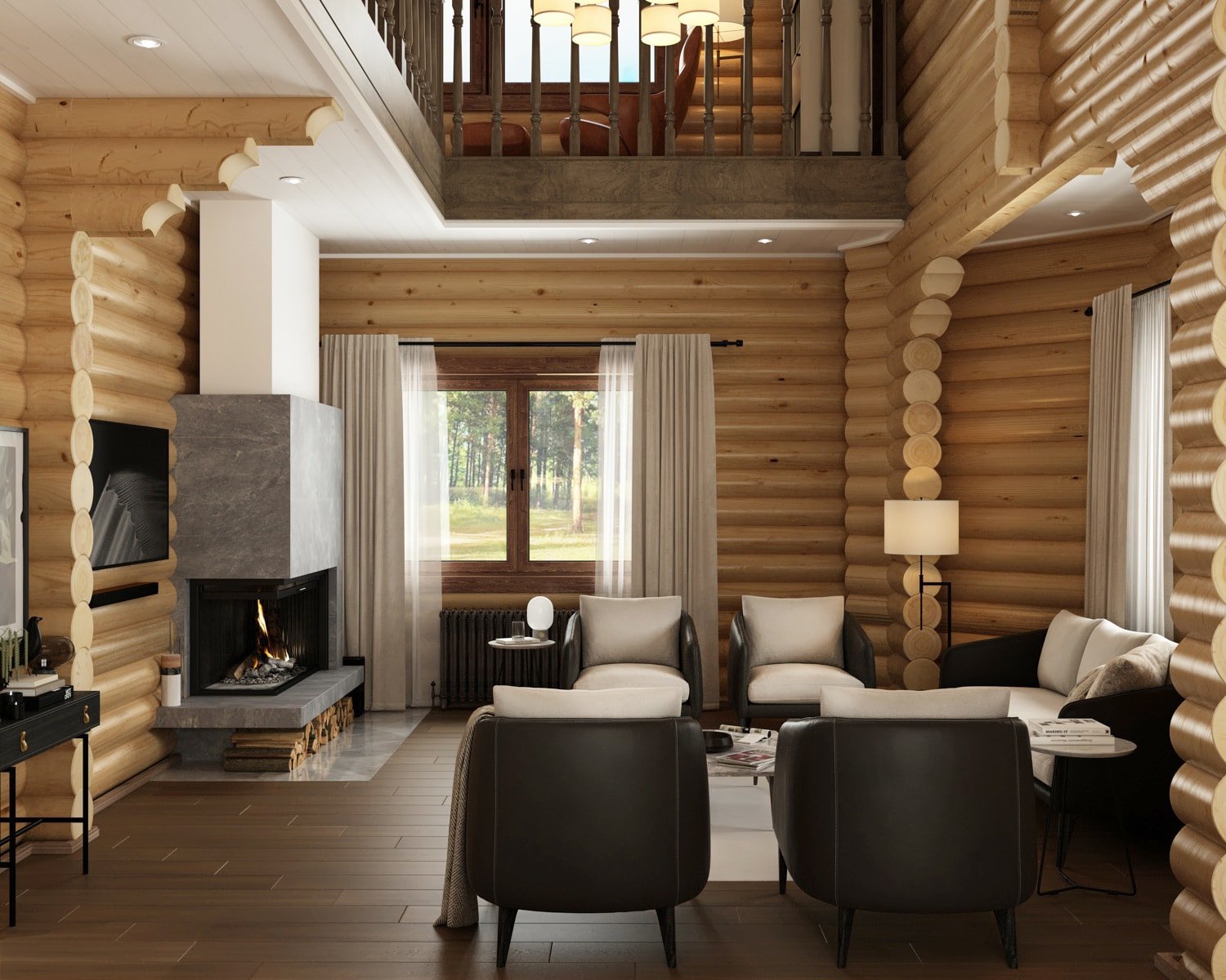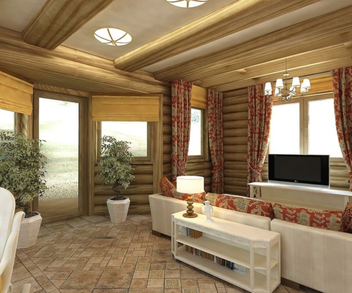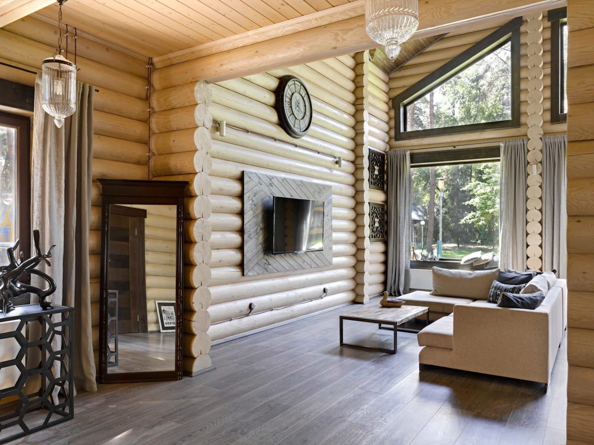 Интерьер дом из оцилиндрованного бревна внутри дома
