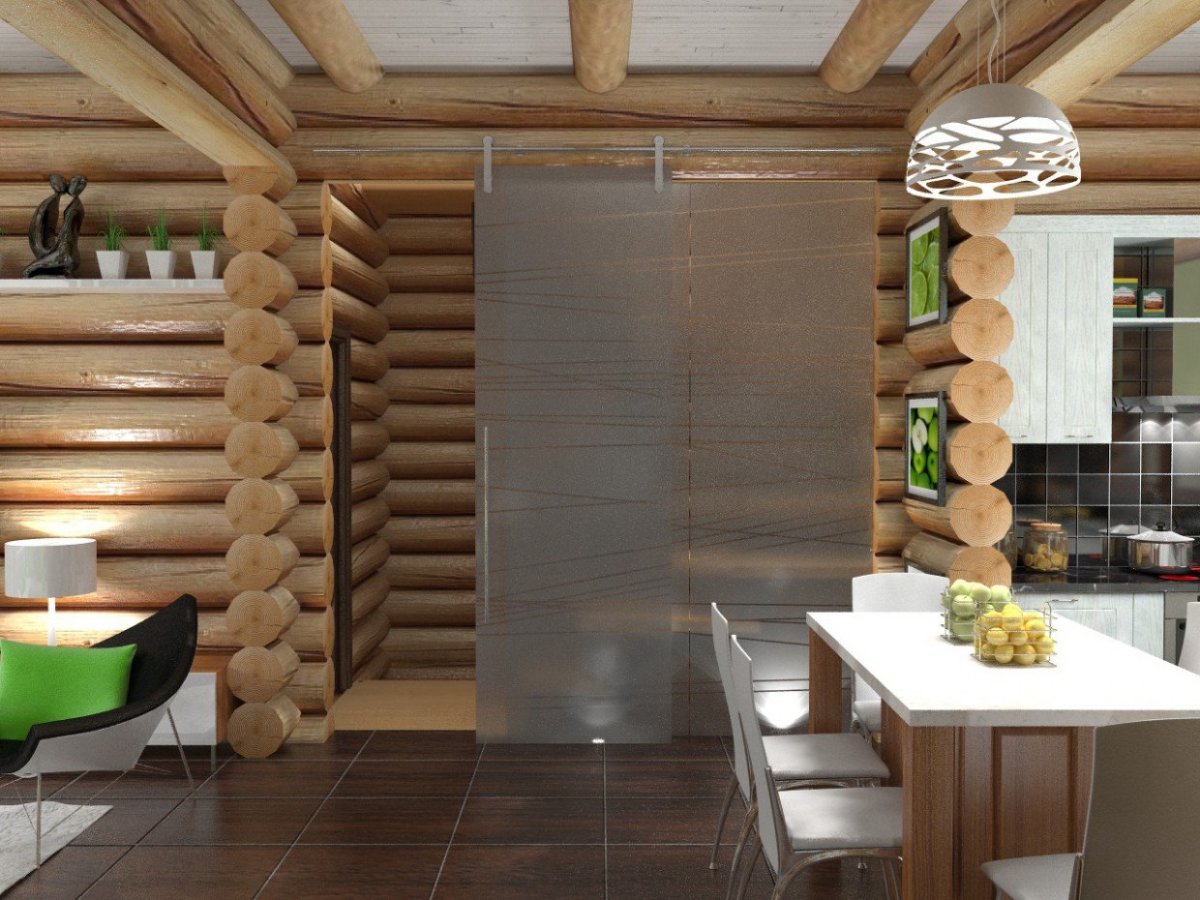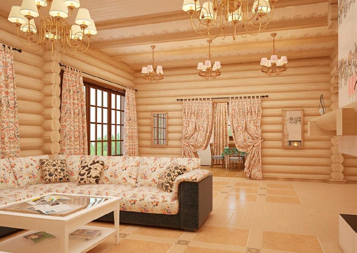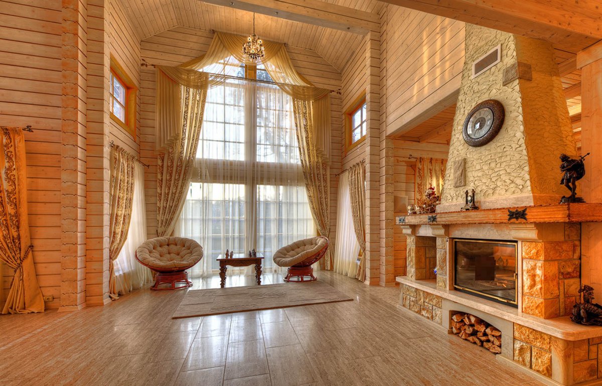 Интерьер дом из оцилиндрованного бревна внутри дома