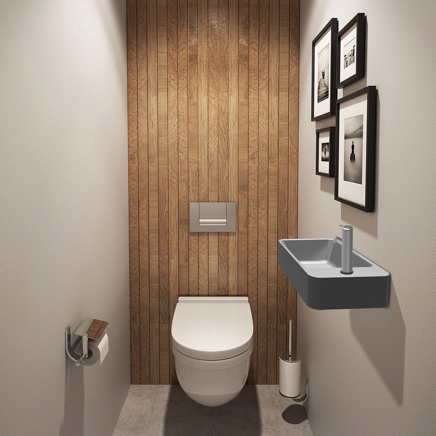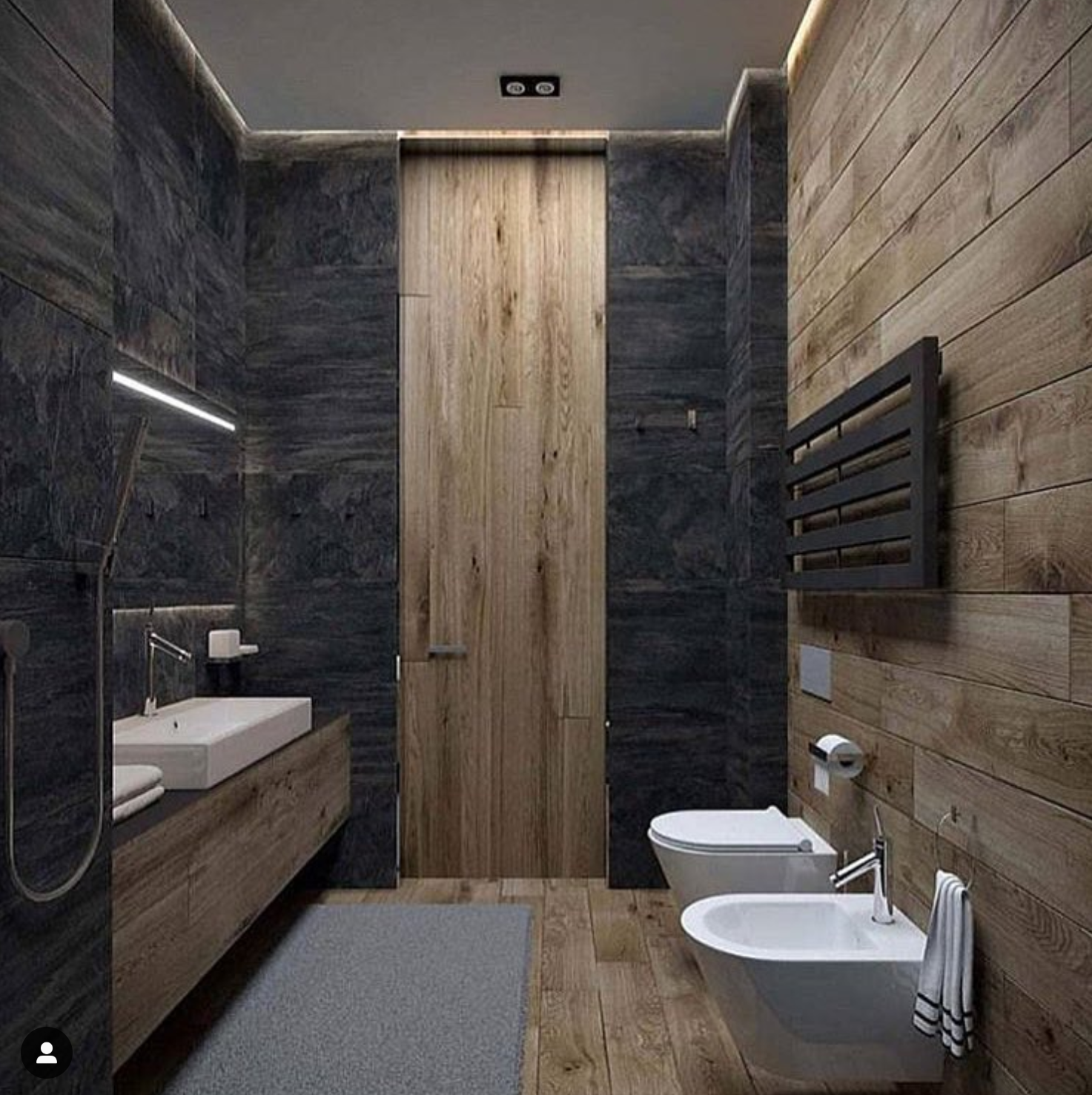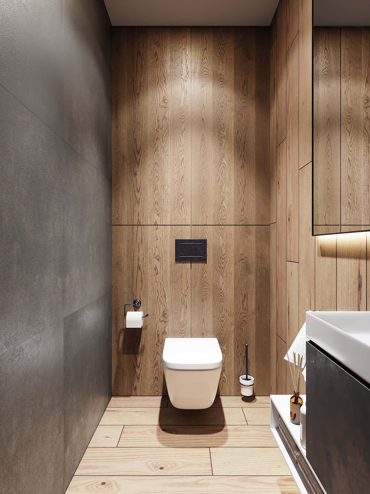 Ванная серая с деревом