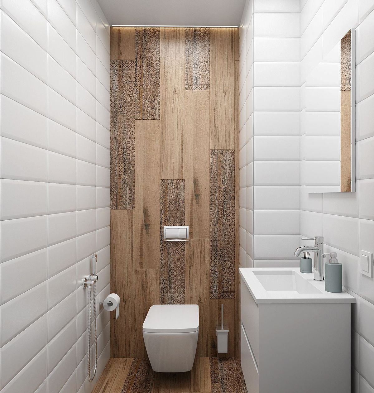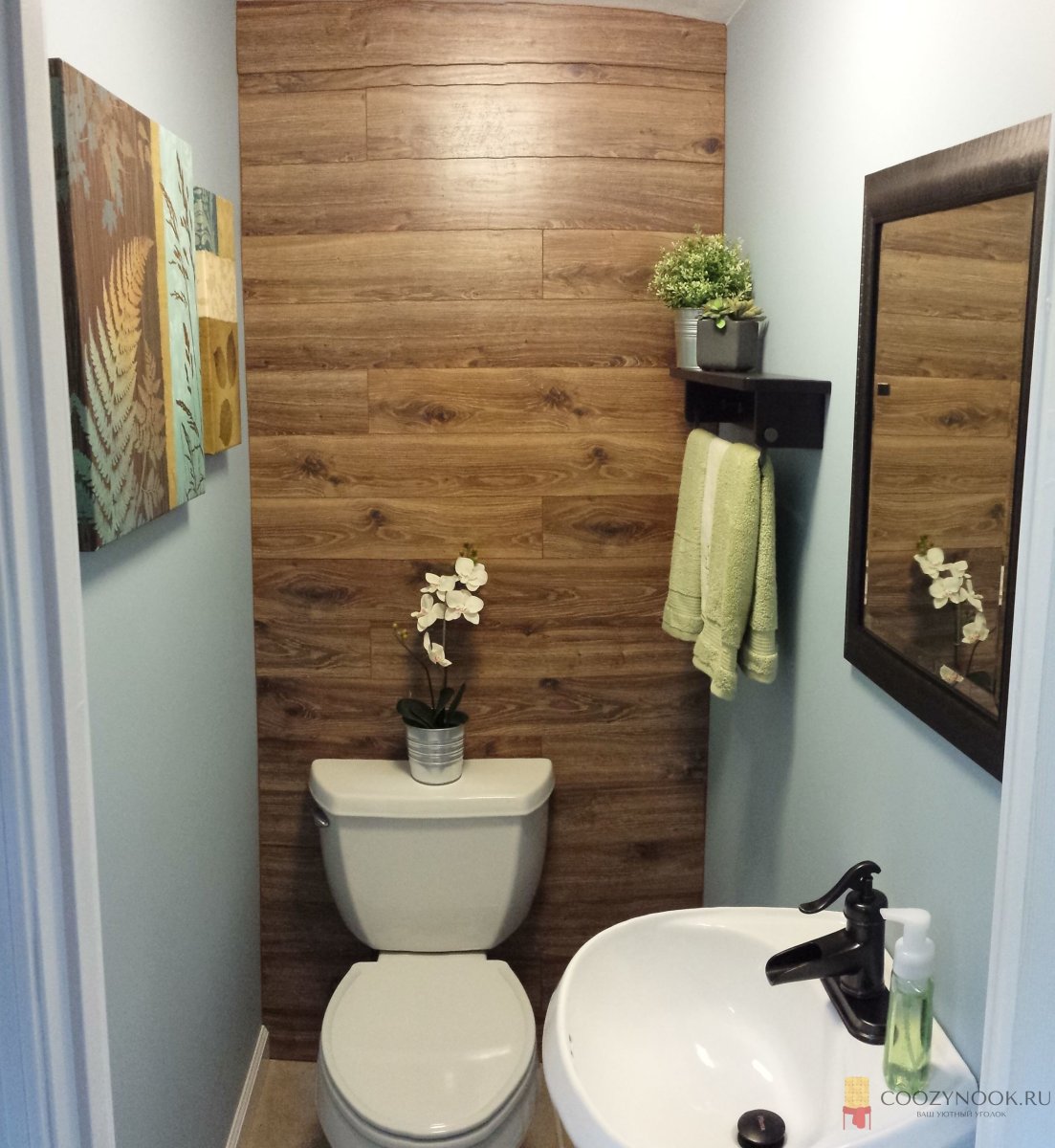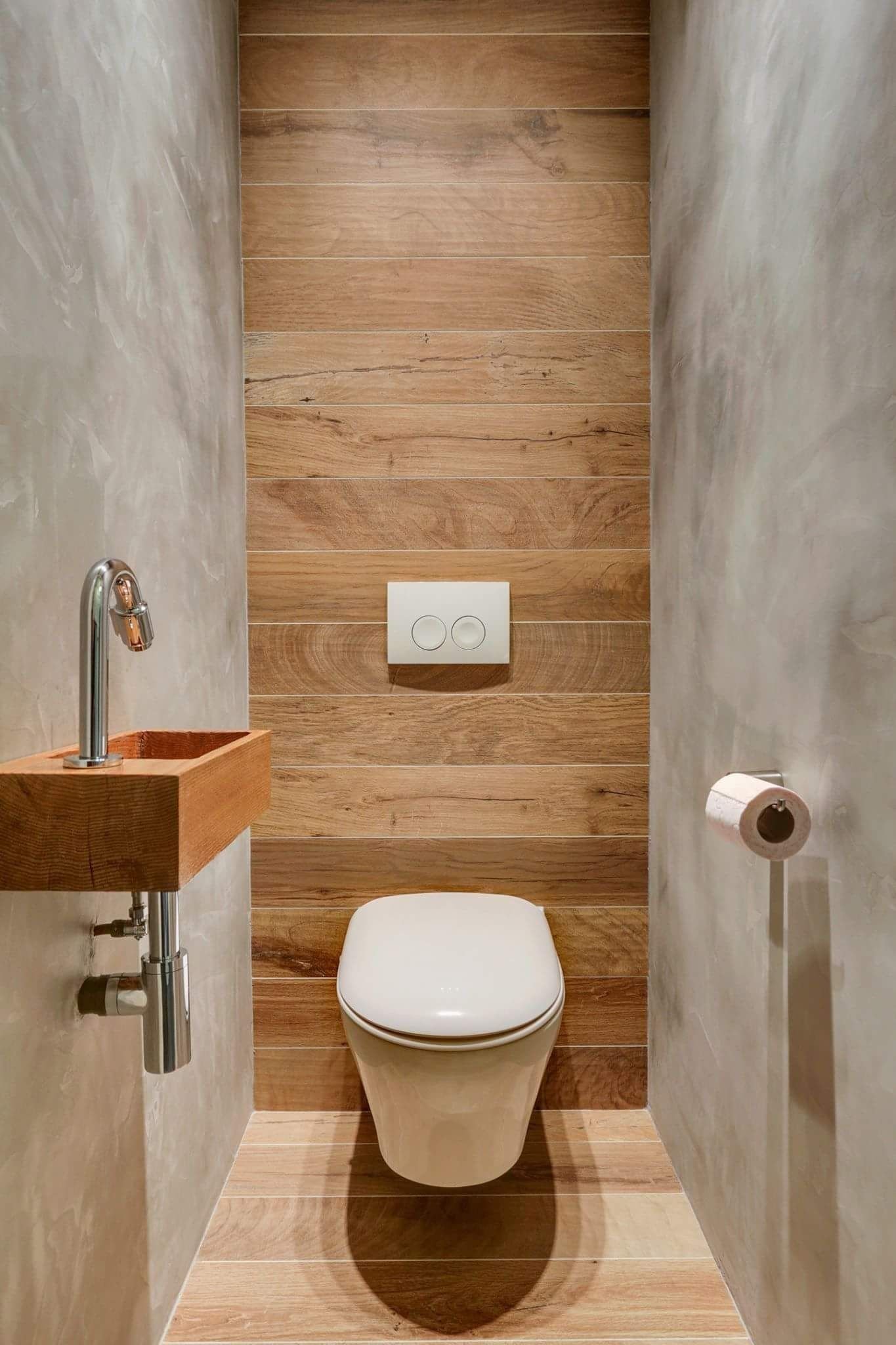 Плитка под дерево в маленьком туалете
