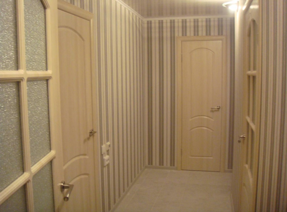 Обои в полоску в коридоре квартиры