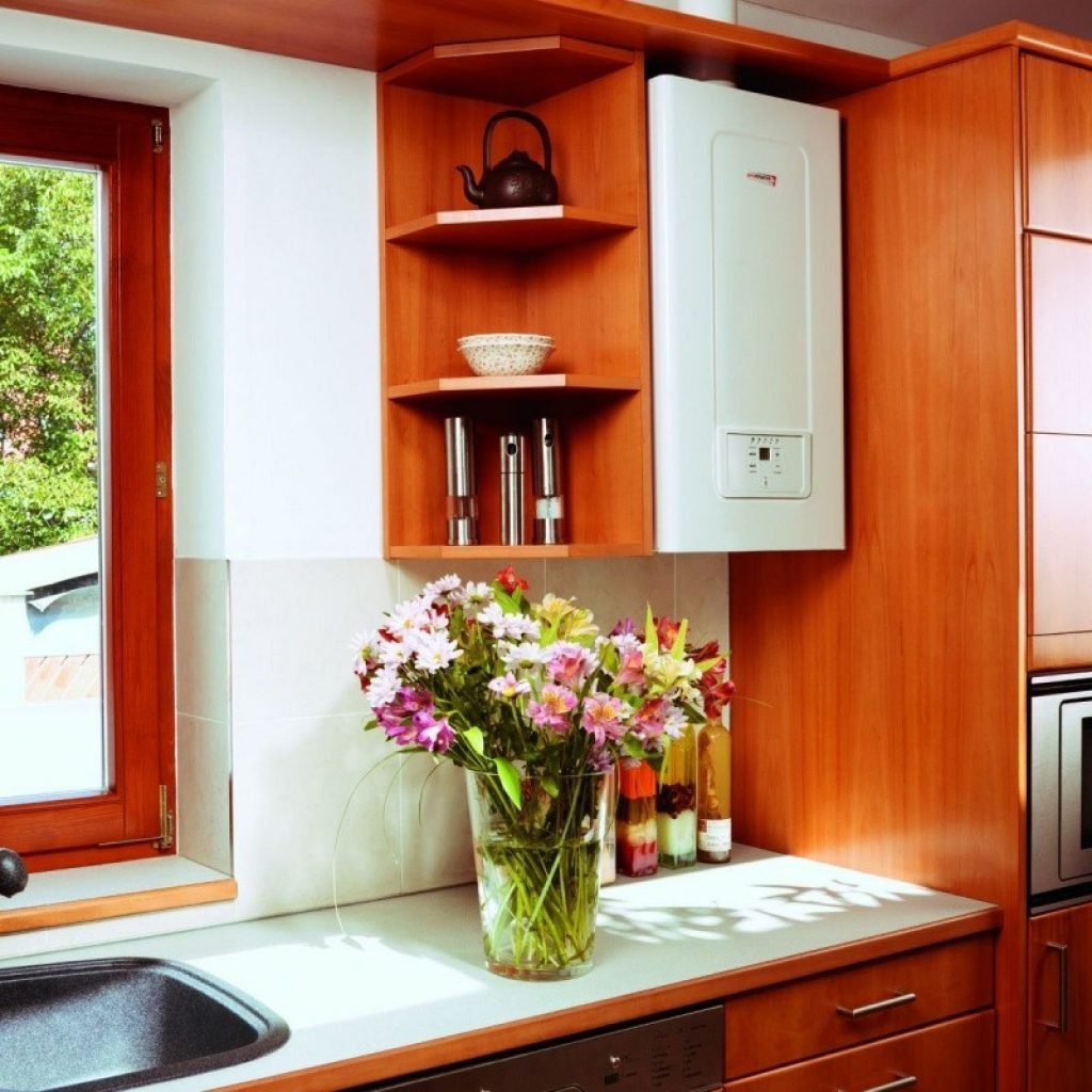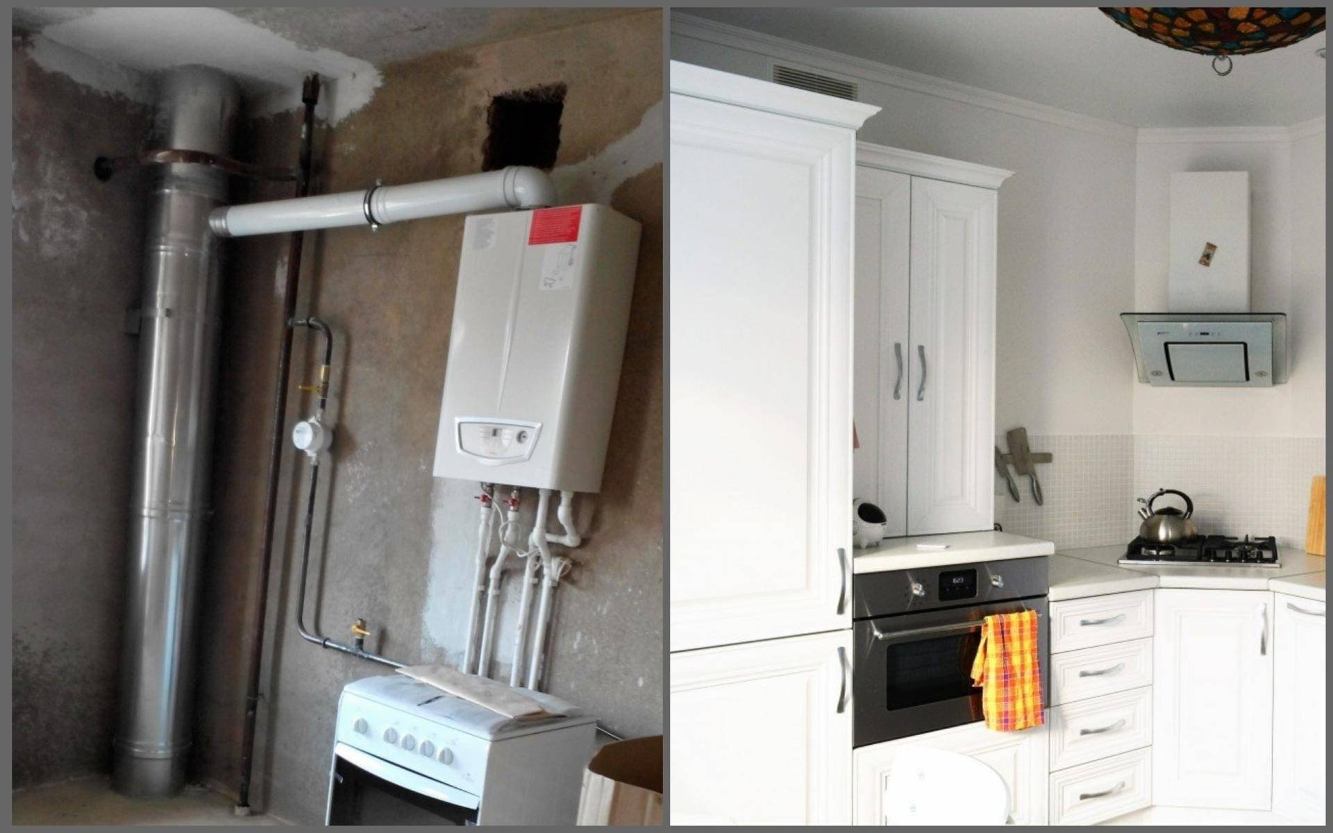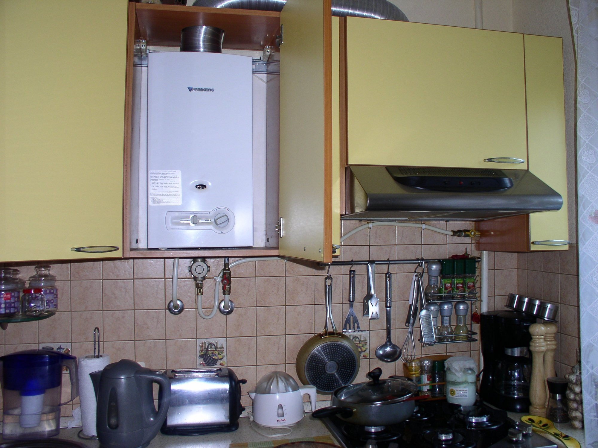 Интерьер кухни 5м.кв с газовой котлом навесным155на2м