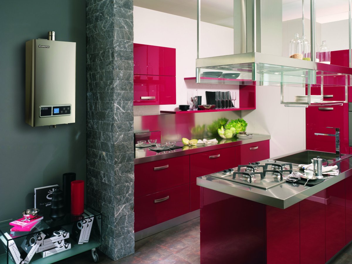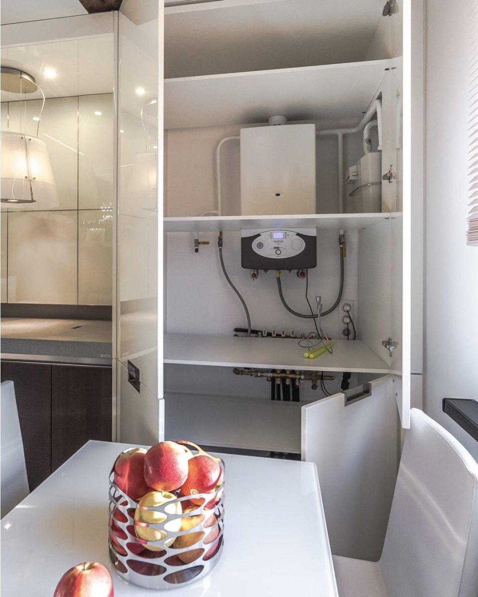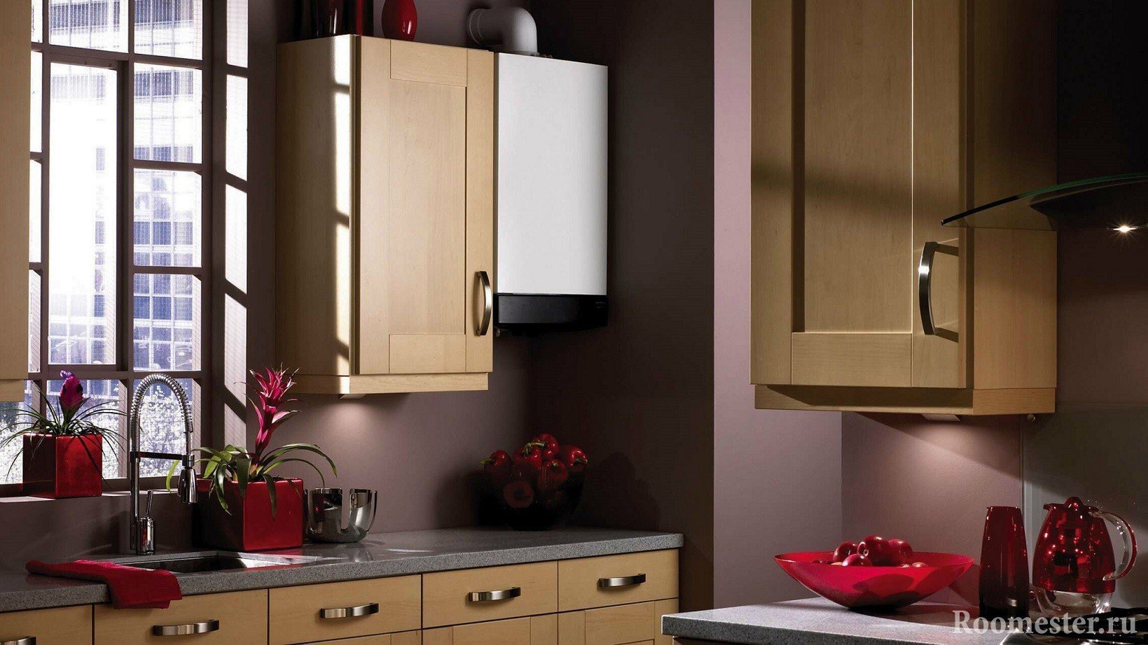 Интерьер кухни 5м.кв с газовой котлом навесным155на2м