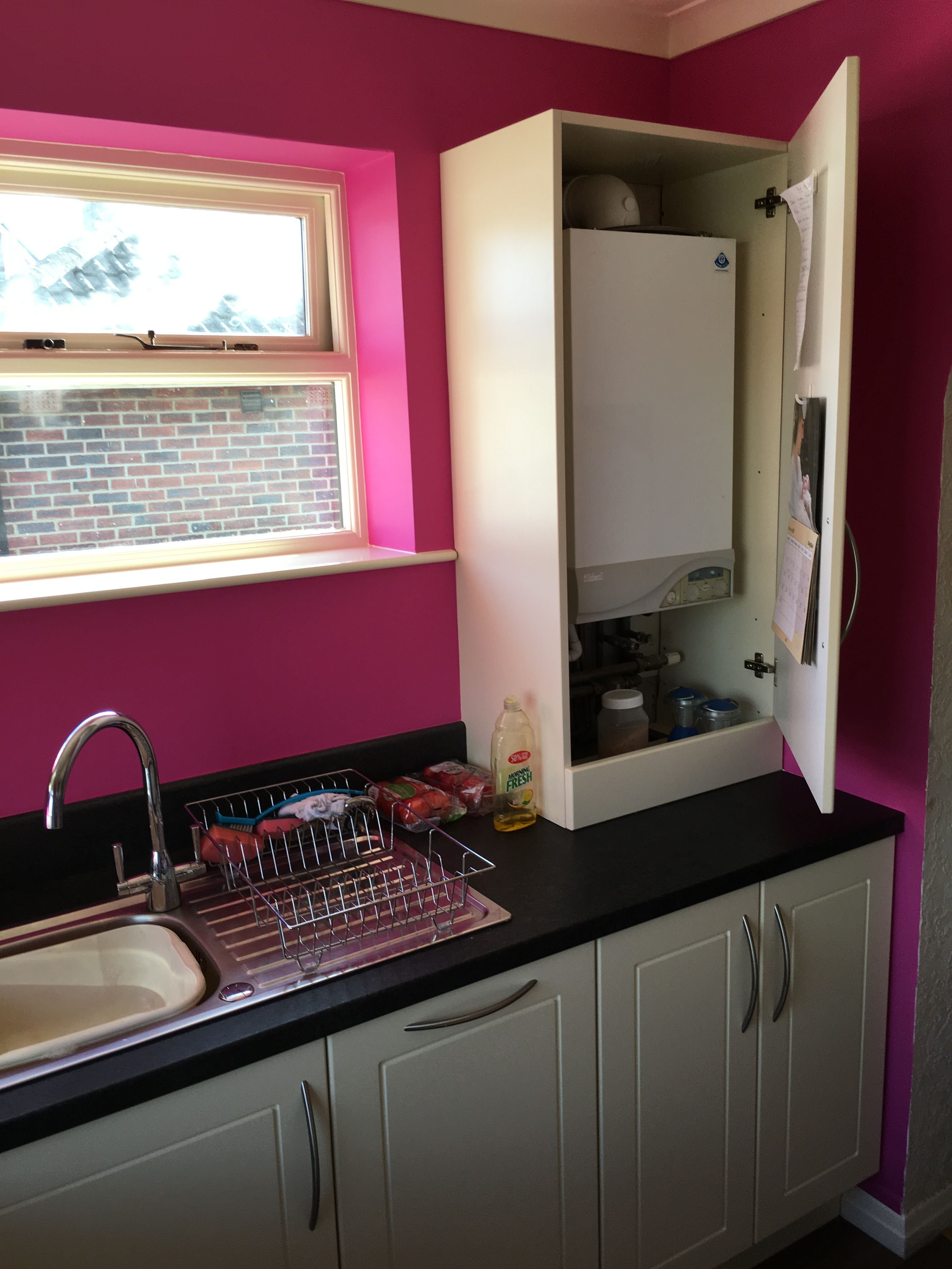 Simple Cupboard and raised Floor to Hide Boiler and Pipe work .