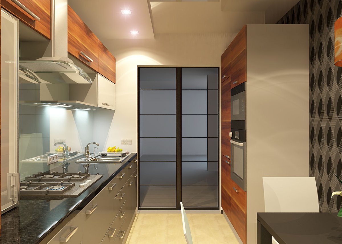 Интерьер кухни 5м.кв с газовой колонкой155на2м