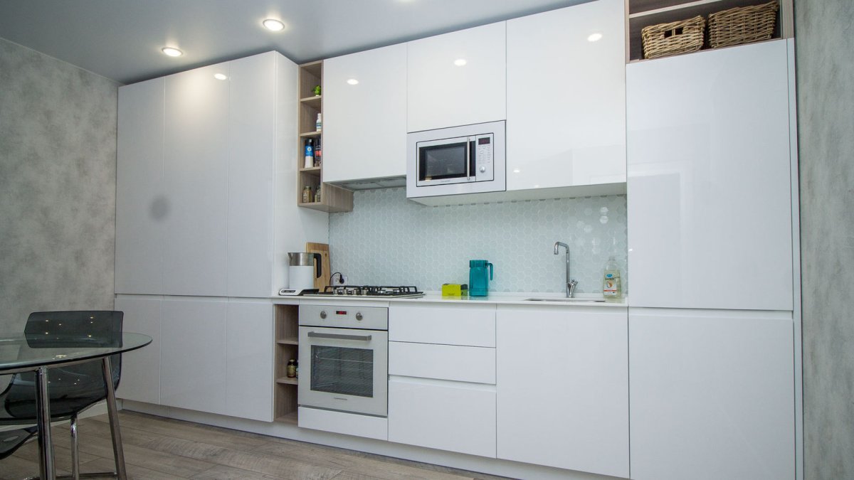 Прямой кухонный гарнитур 3 метра с холодильником и пеналом