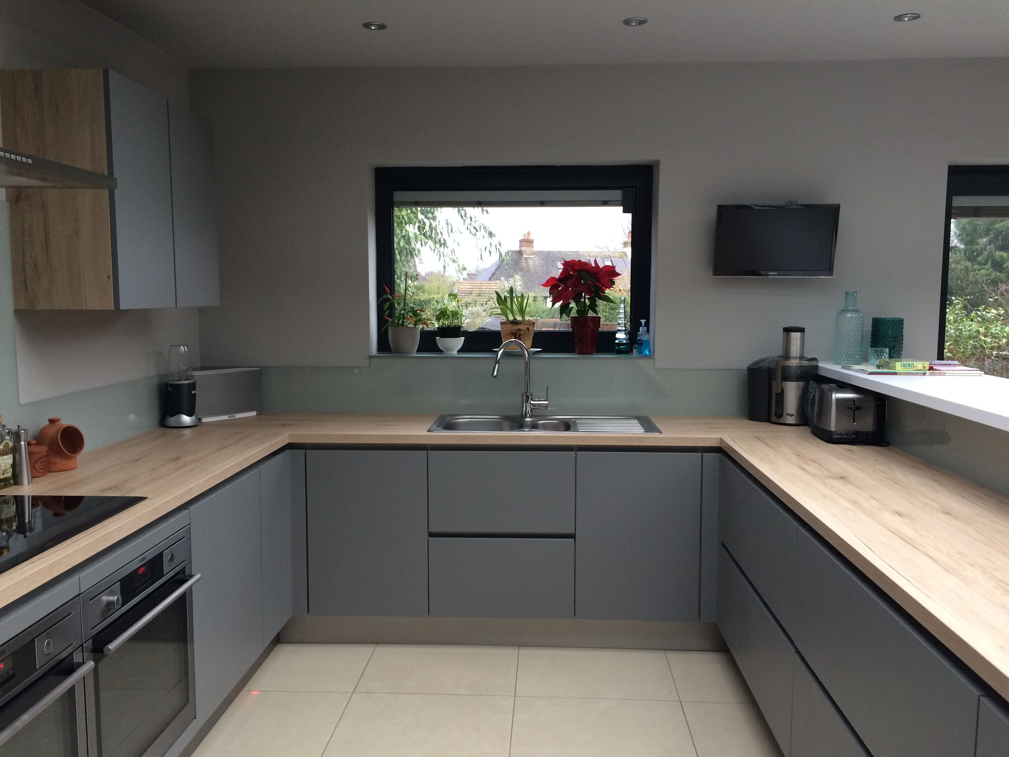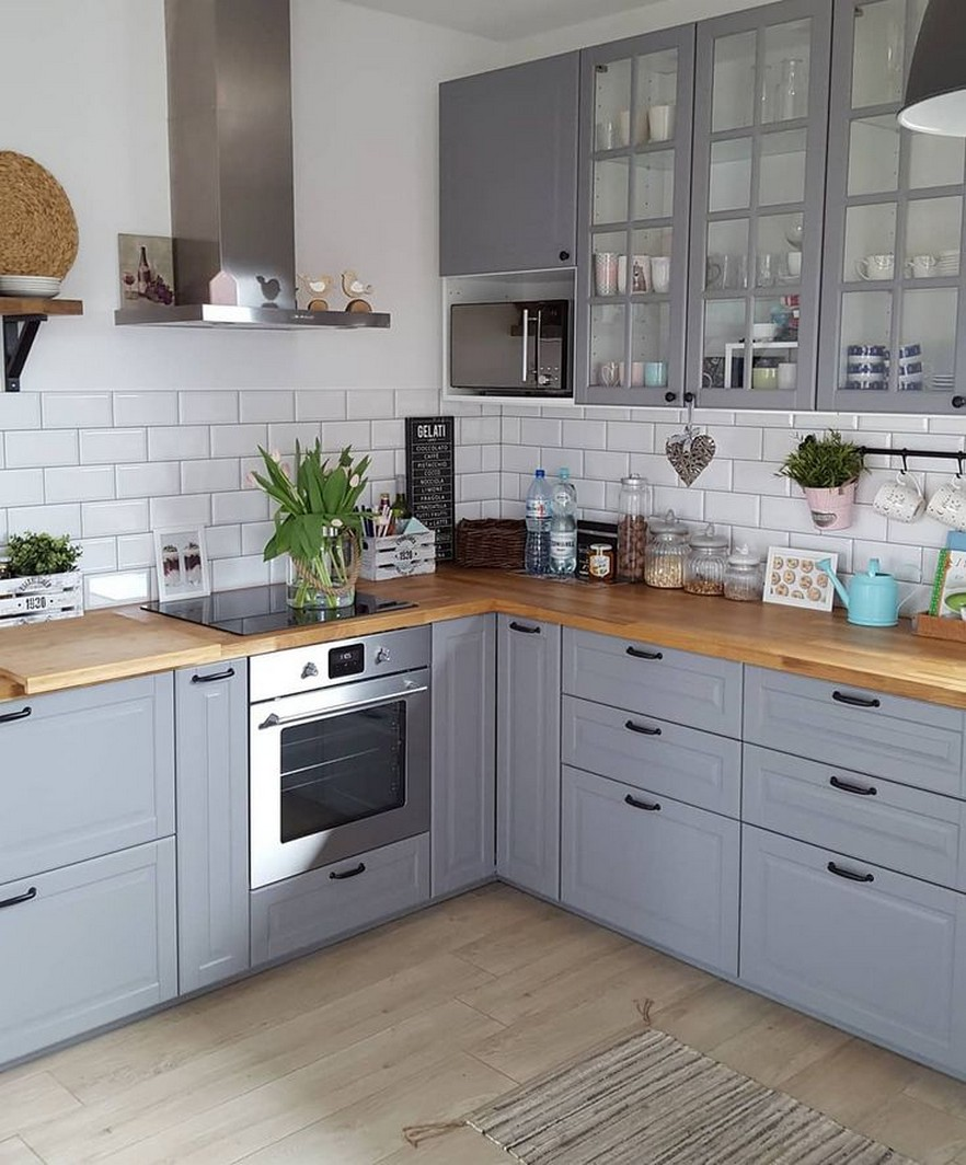 Кухня икеа серая с деревянной столешницей