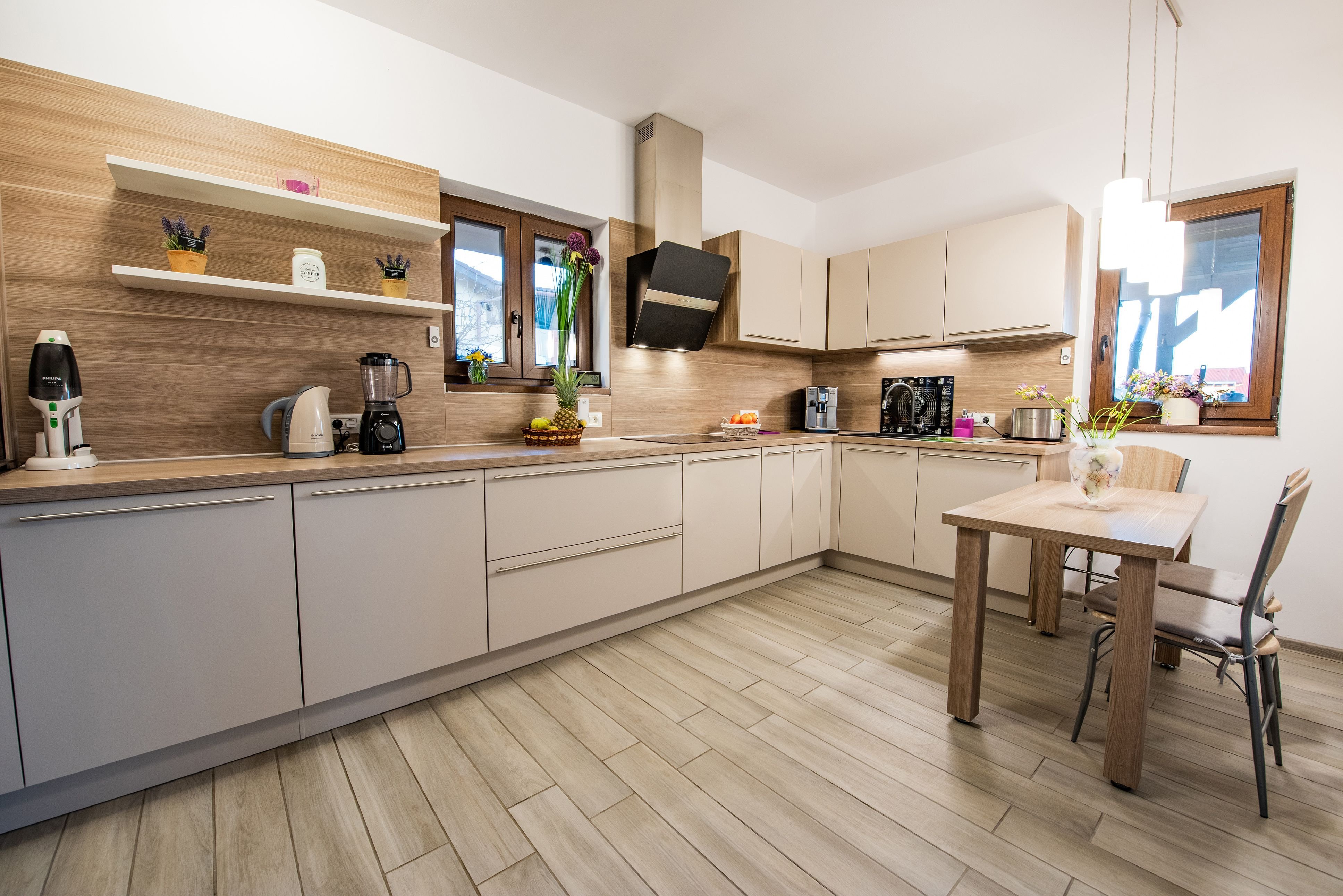 Кухня с деревянной столешницей