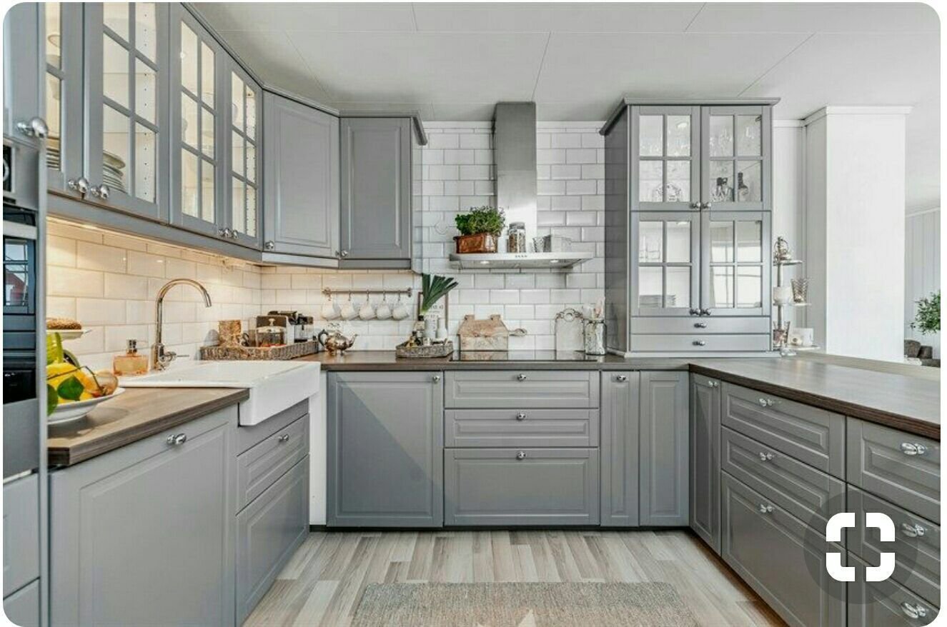 Кухня серая икеа угловая