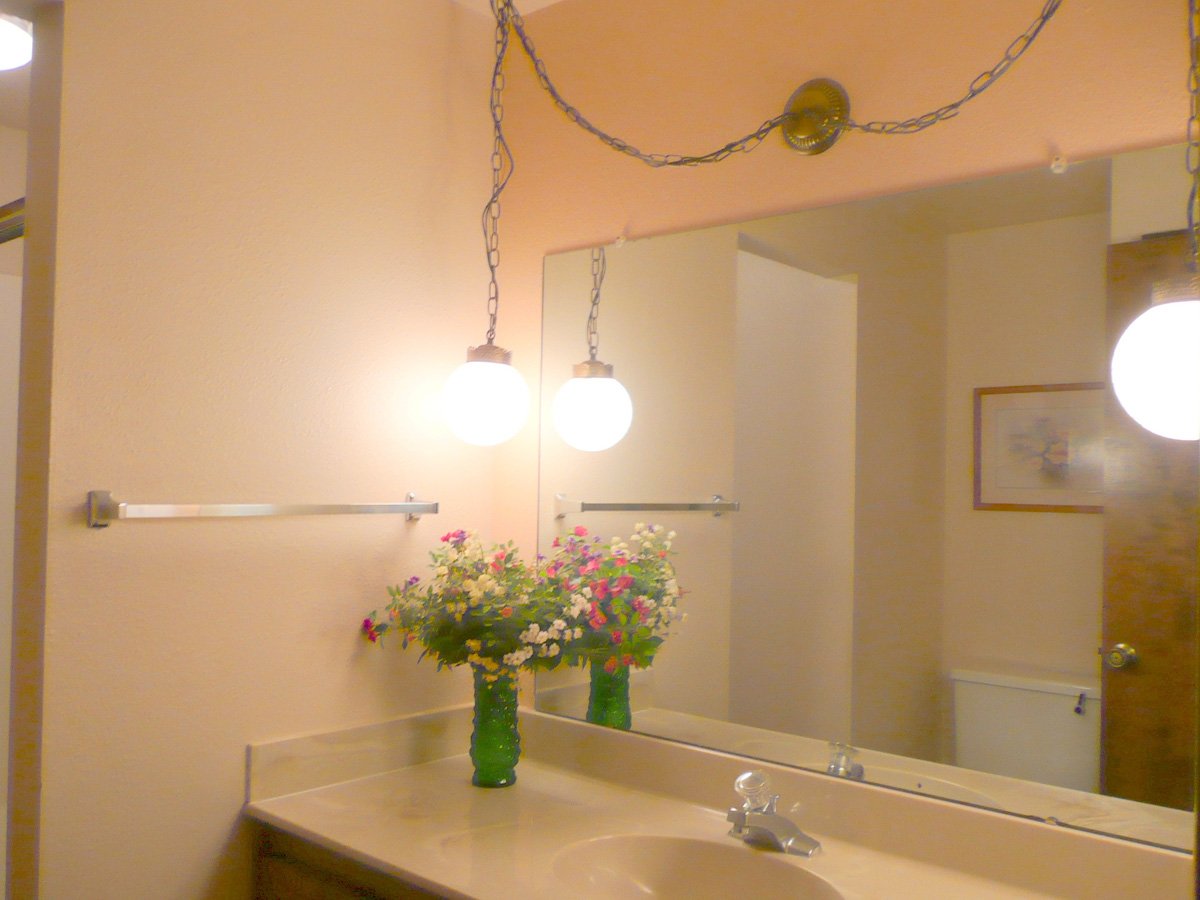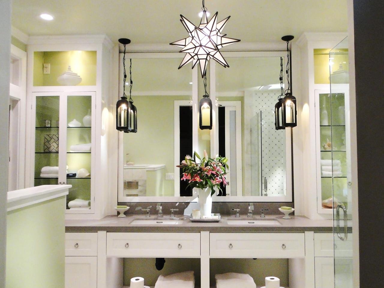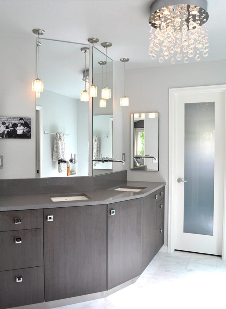 Подвесные светильники в ванной у зеркала
