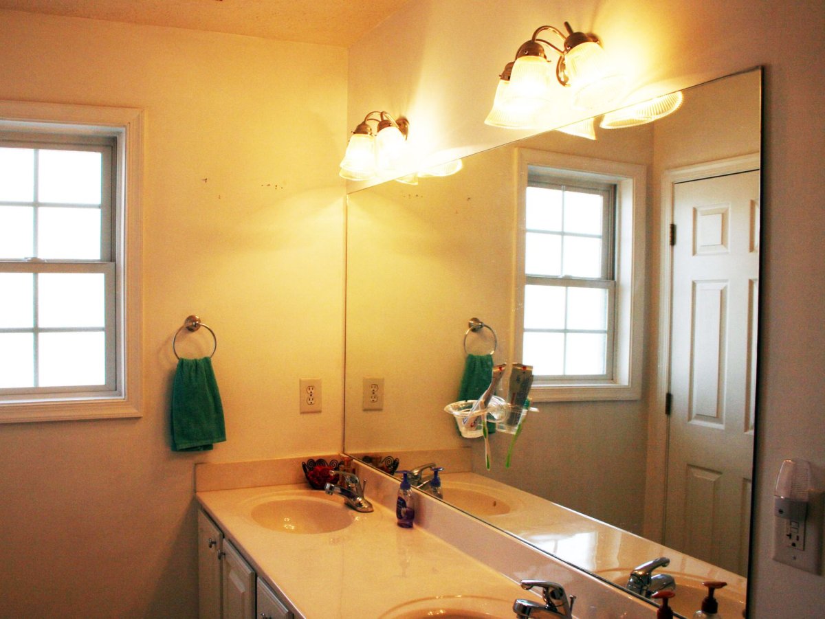 Светильники около зеркала в ванной