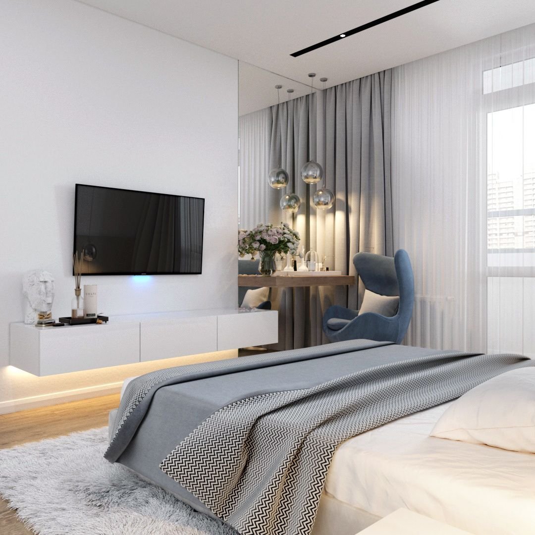Спальная комната в современном стиле с телевизором