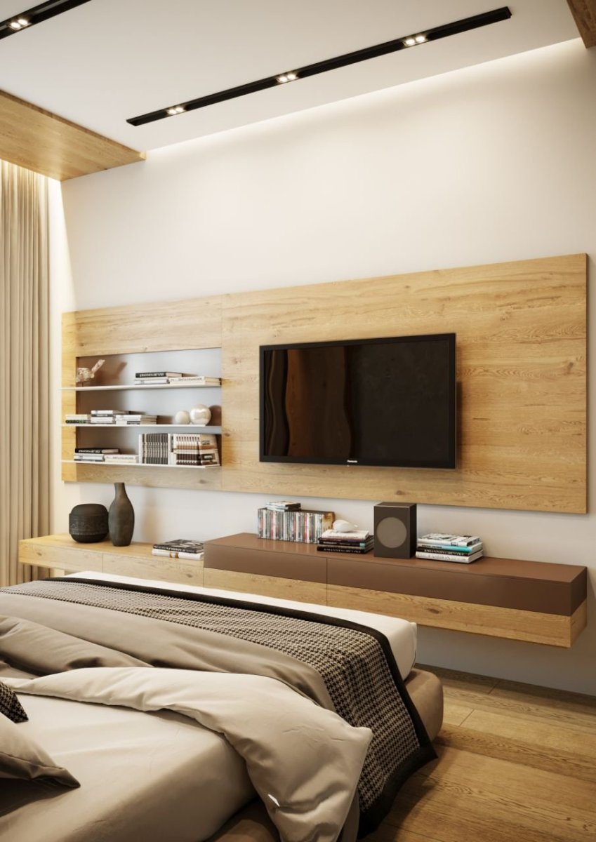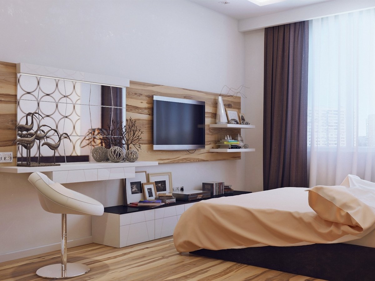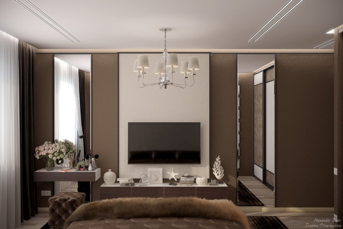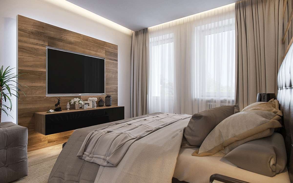 Оформление тв зоны в спальне