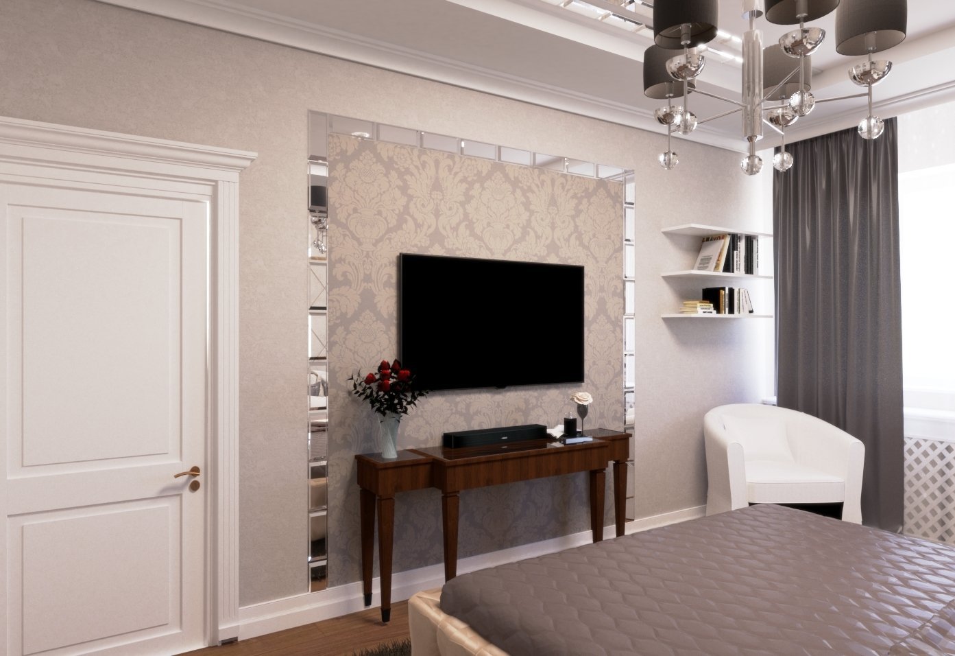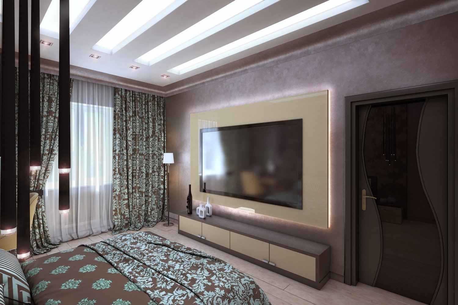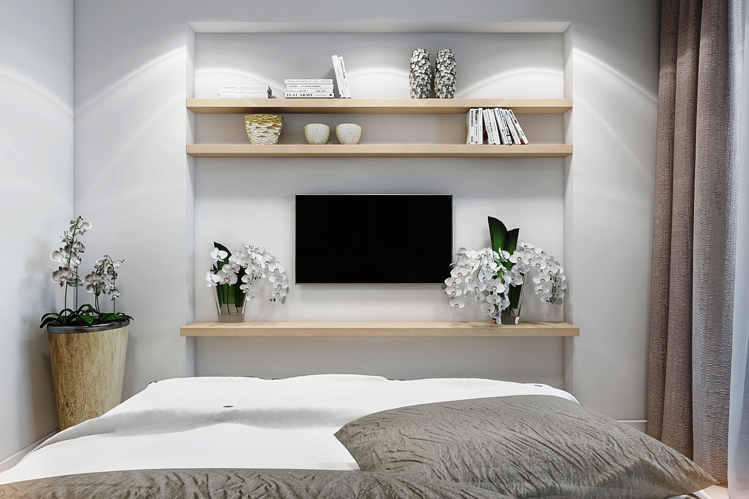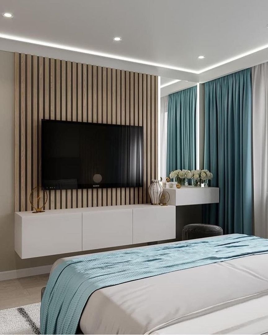 Оформление тв зоны в спальне