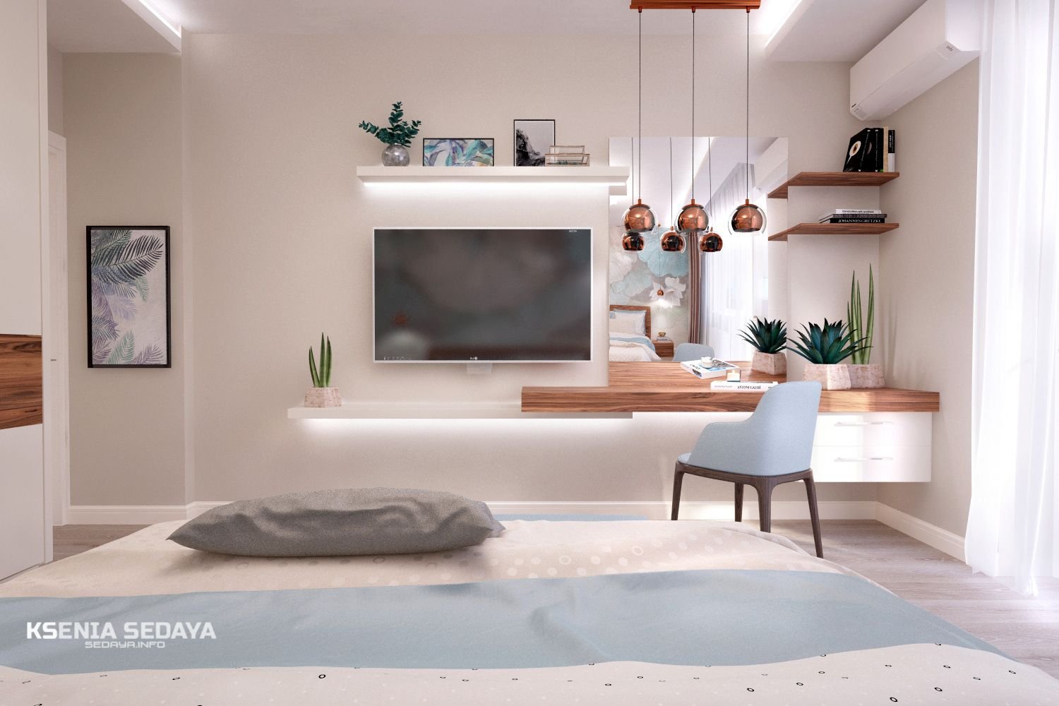 Зона телевизора в спальне