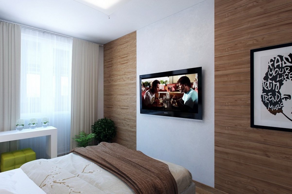 Телевизор на стене в спальне