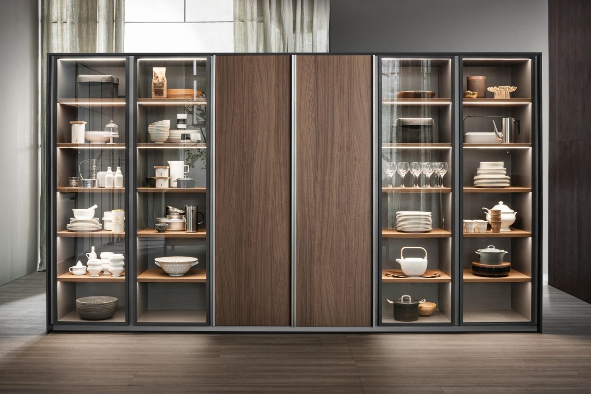 Стеклянные шкафы для посуды на кухню