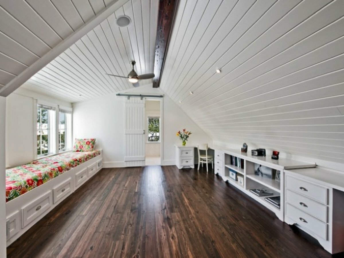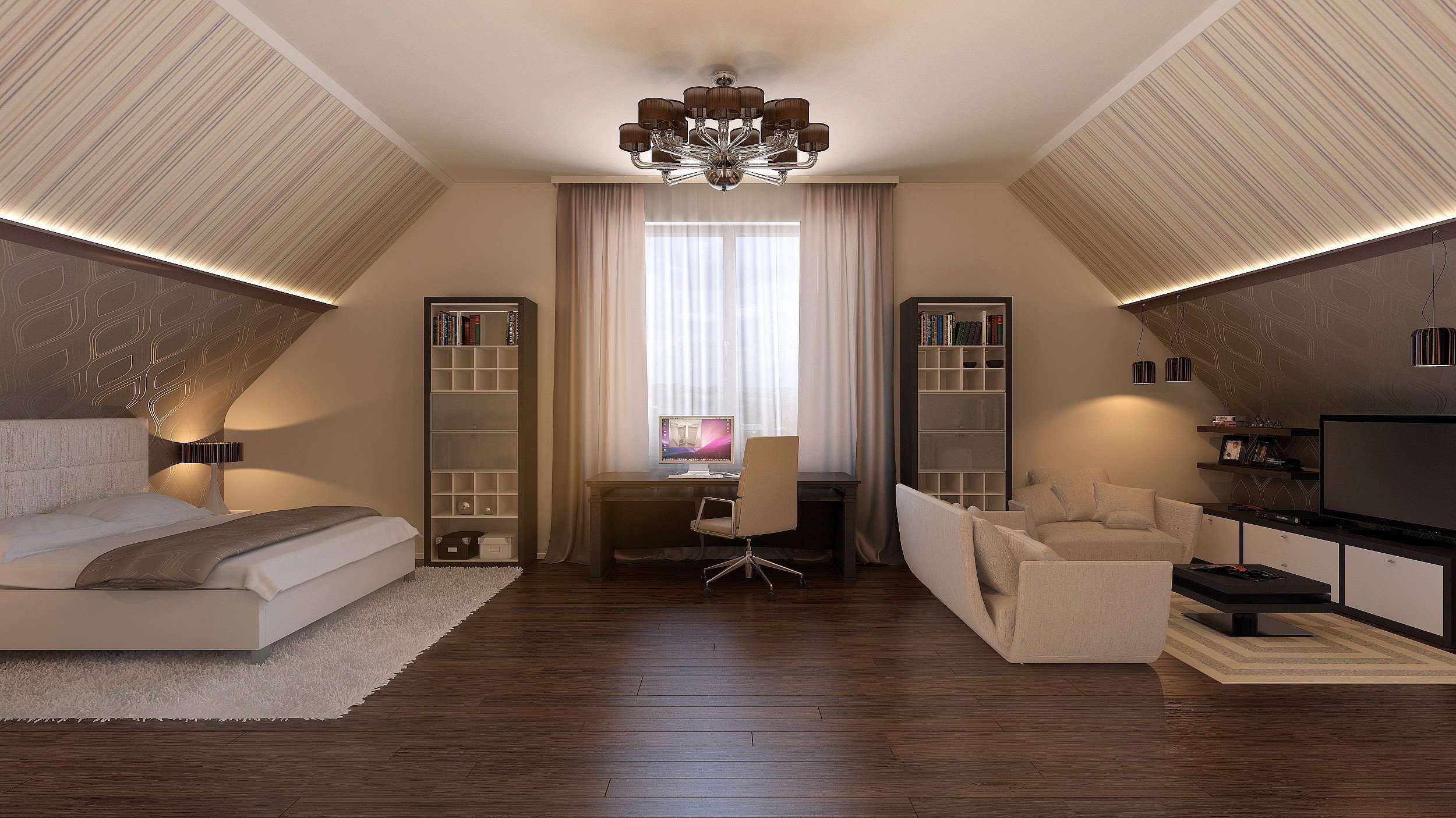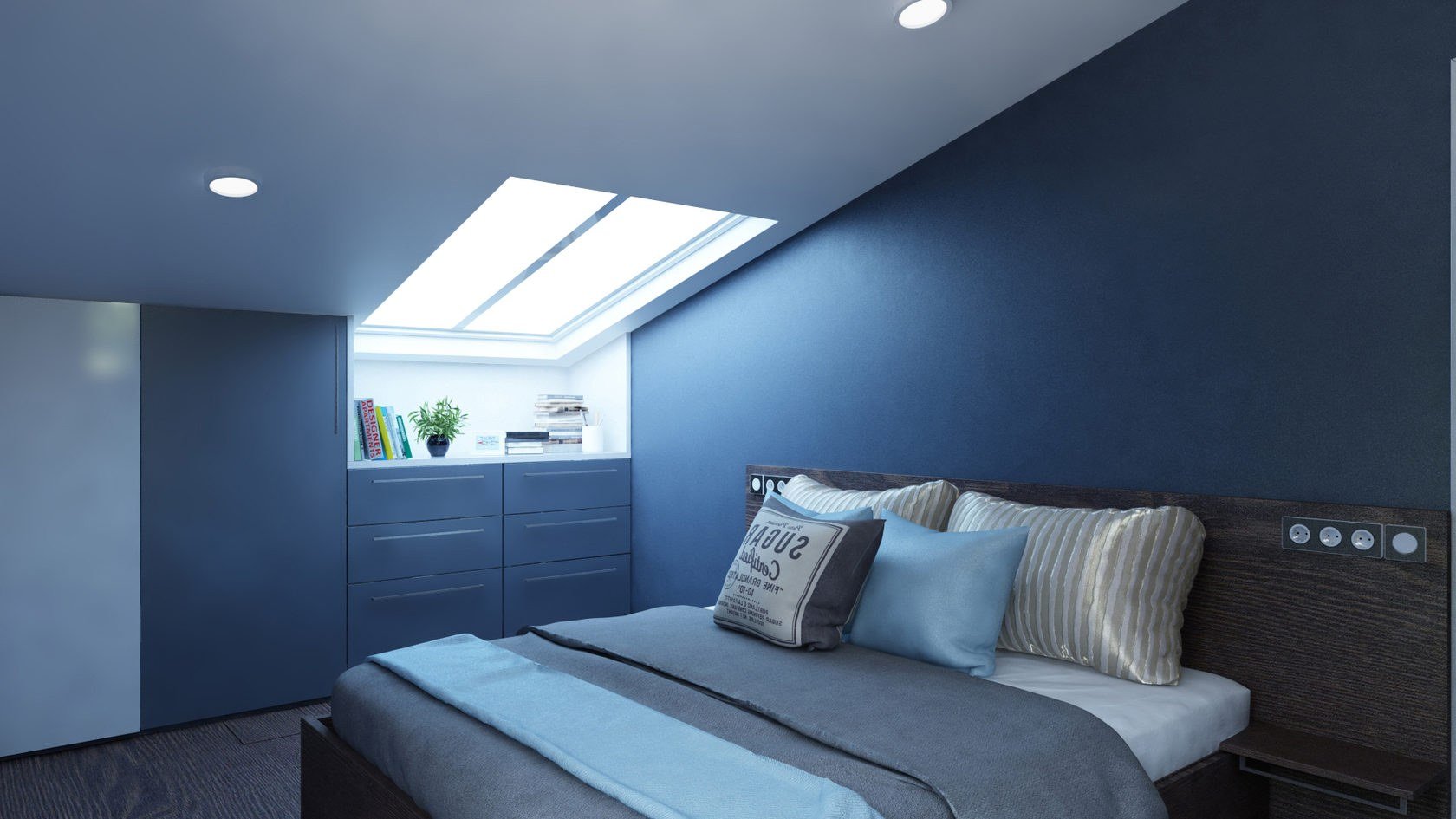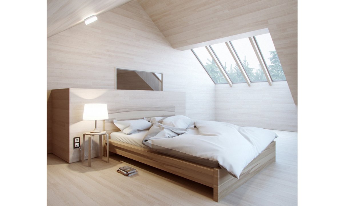 Потолок из гипсокартона на мансарде в минималистичном стиле