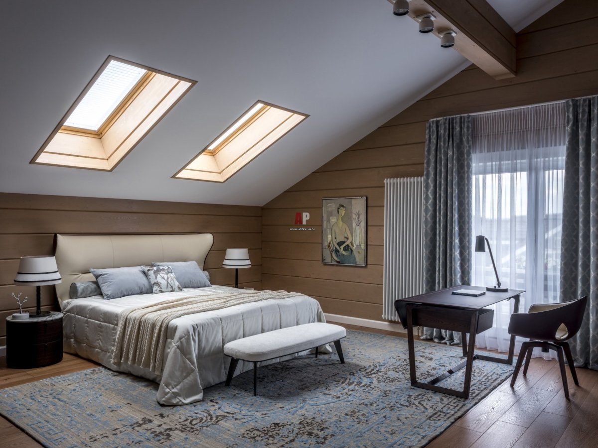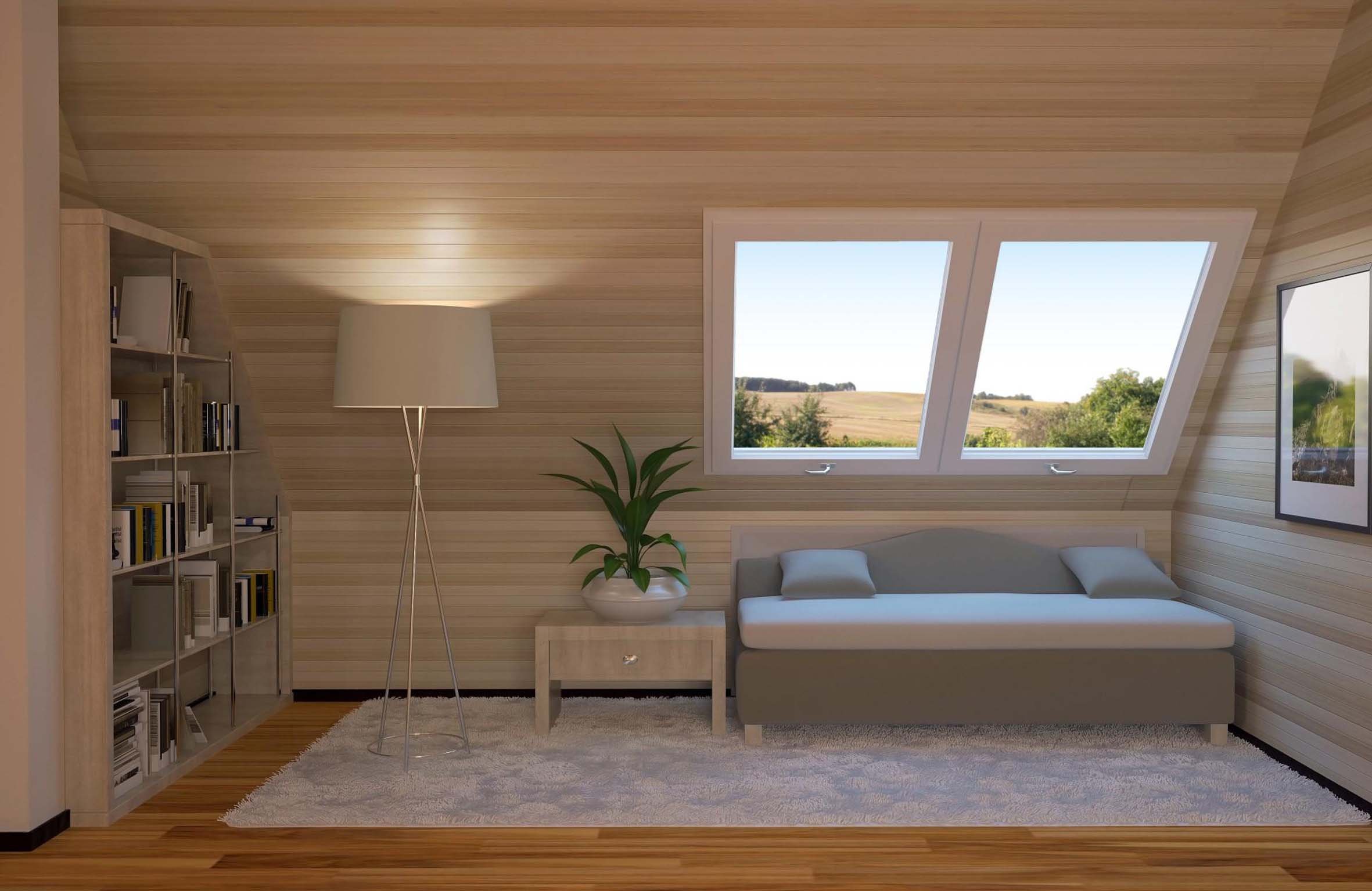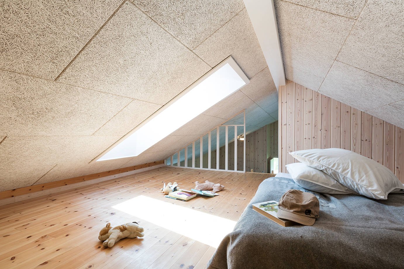 Потолок из гипсокартона на мансарде в минималистичном стиле