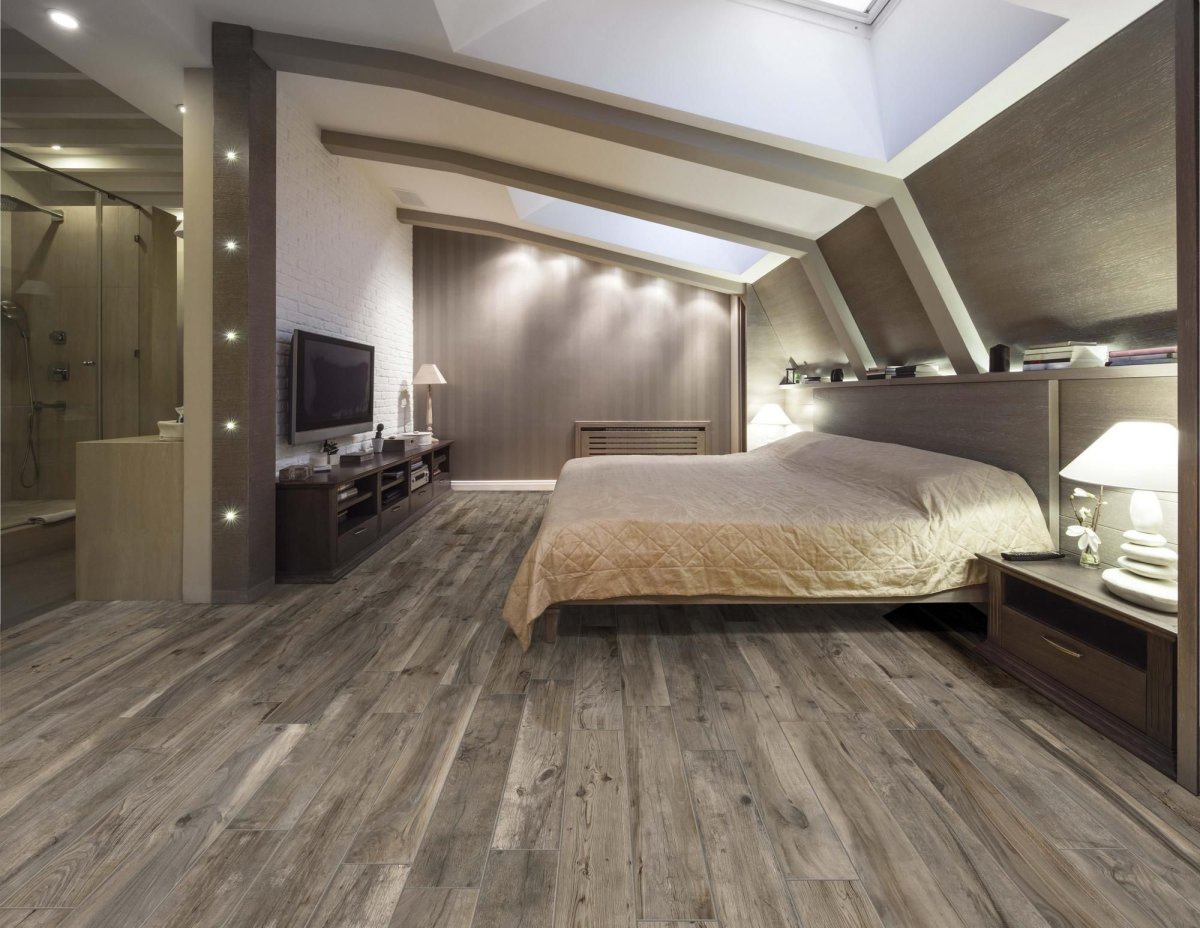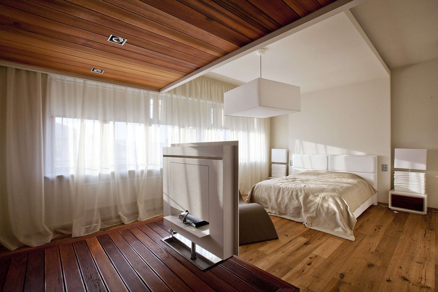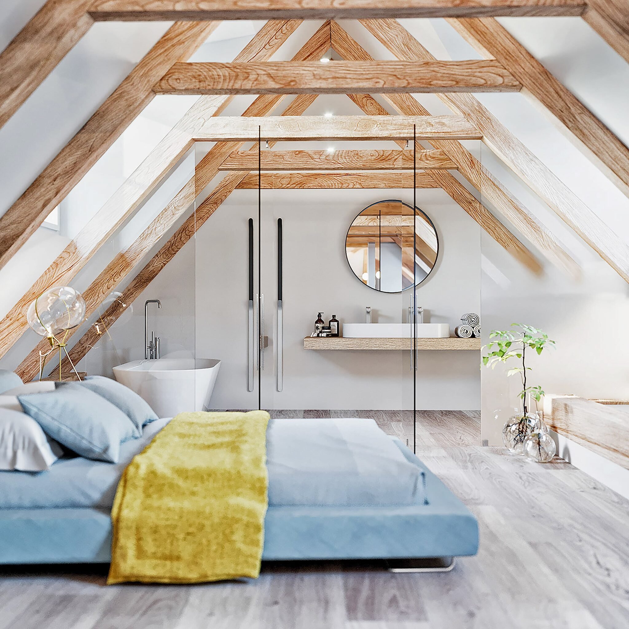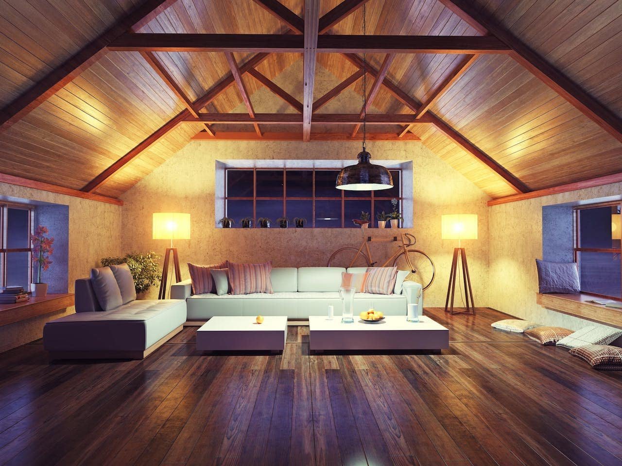 Потолок из гипсокартона на мансарде в минималистичном стиле
