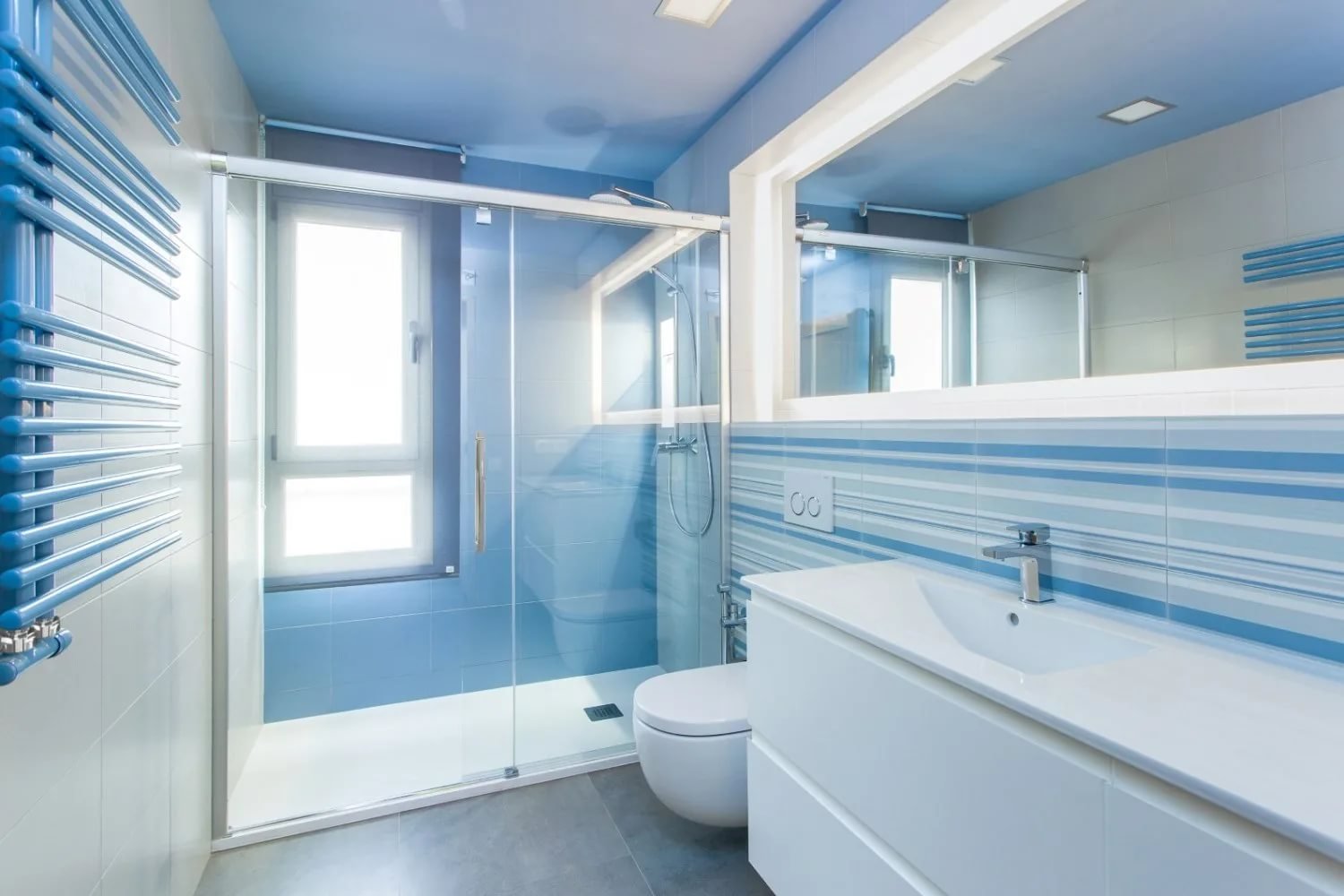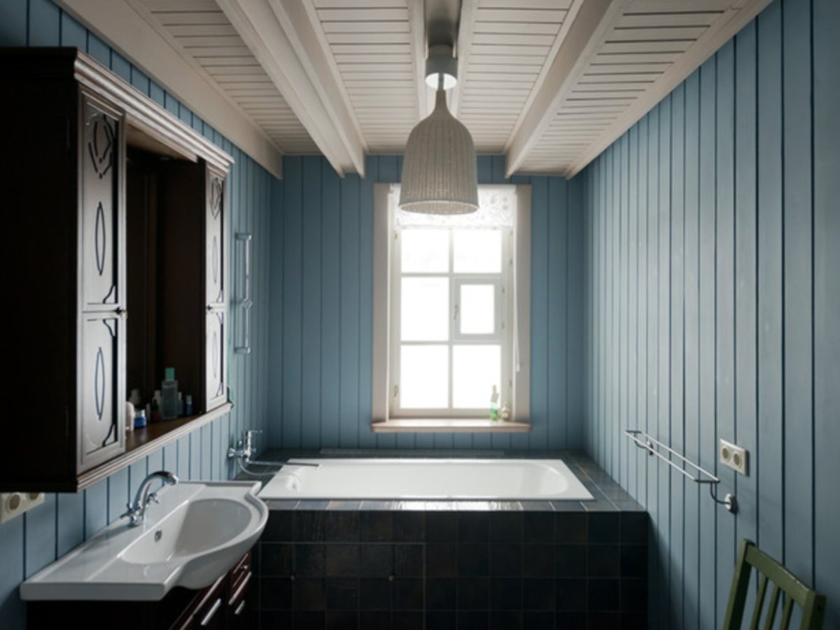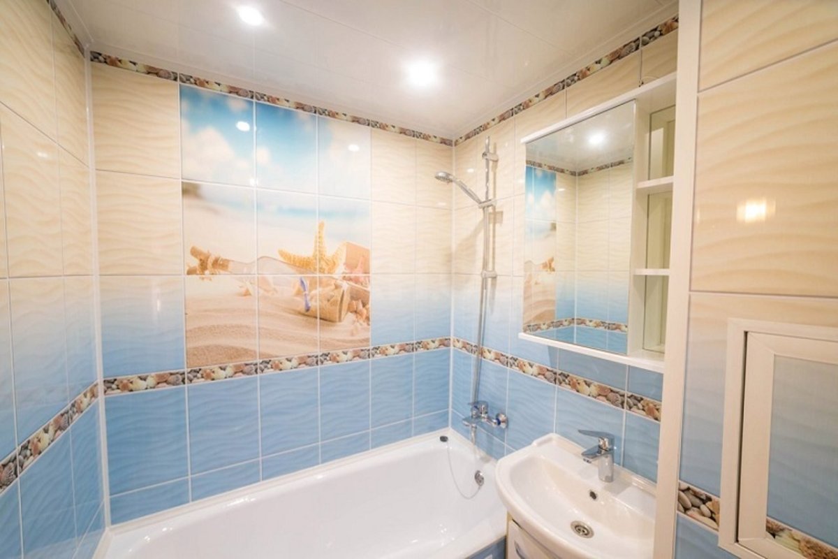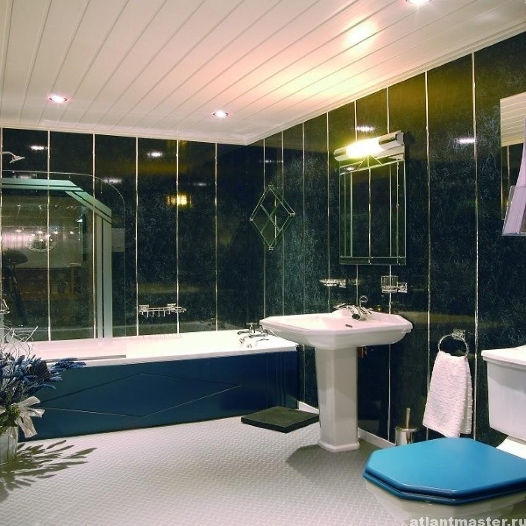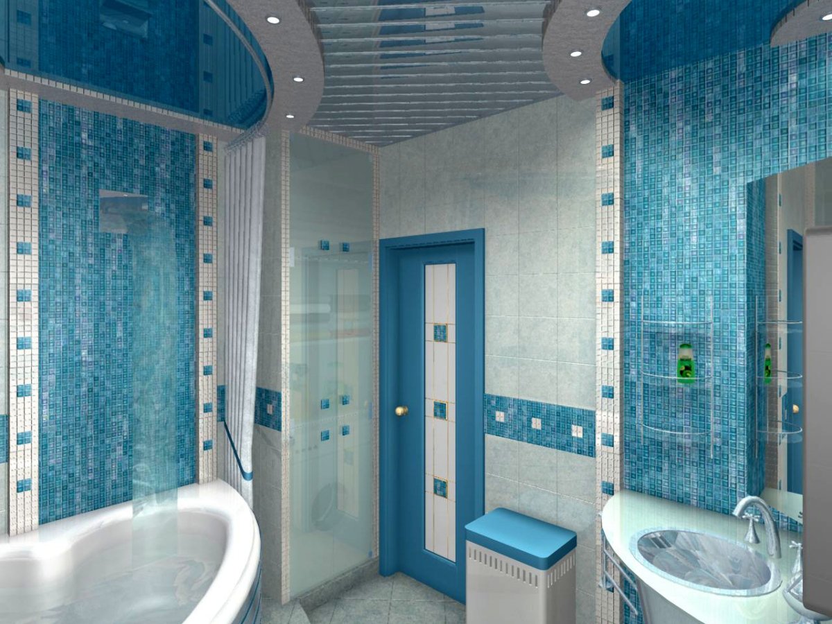 Отделка ванной комнаты пластиковыми панелями мозаика голубая