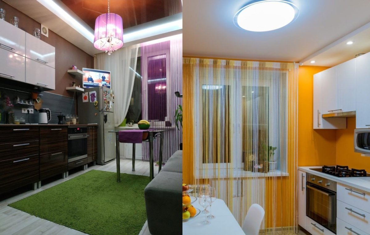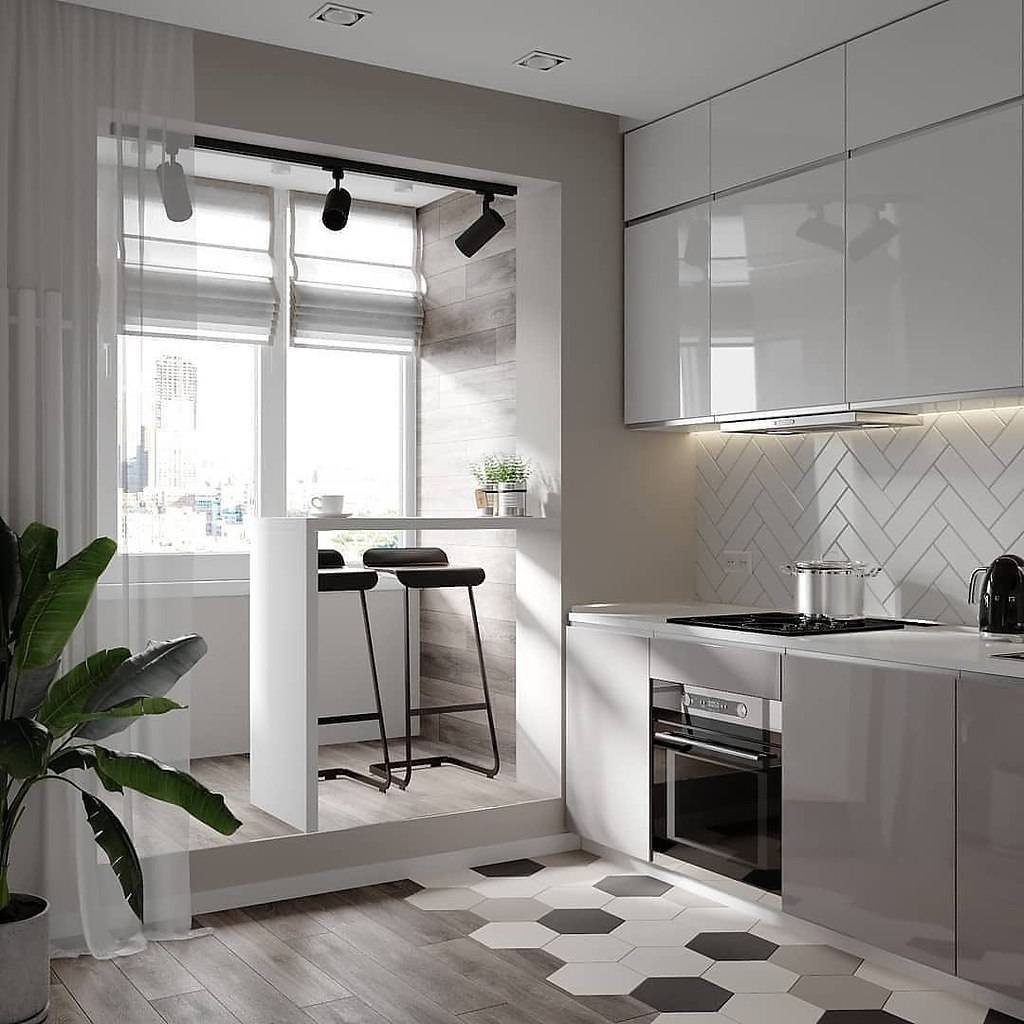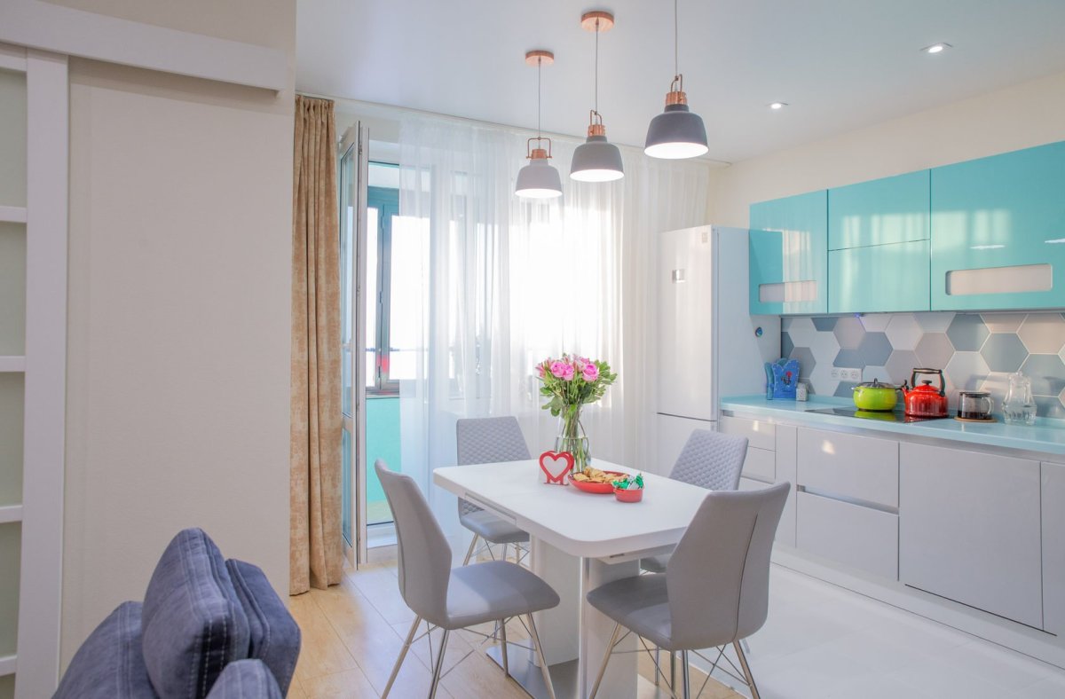 Интерьер кухни 9м2 с выходом на балкон с диваном