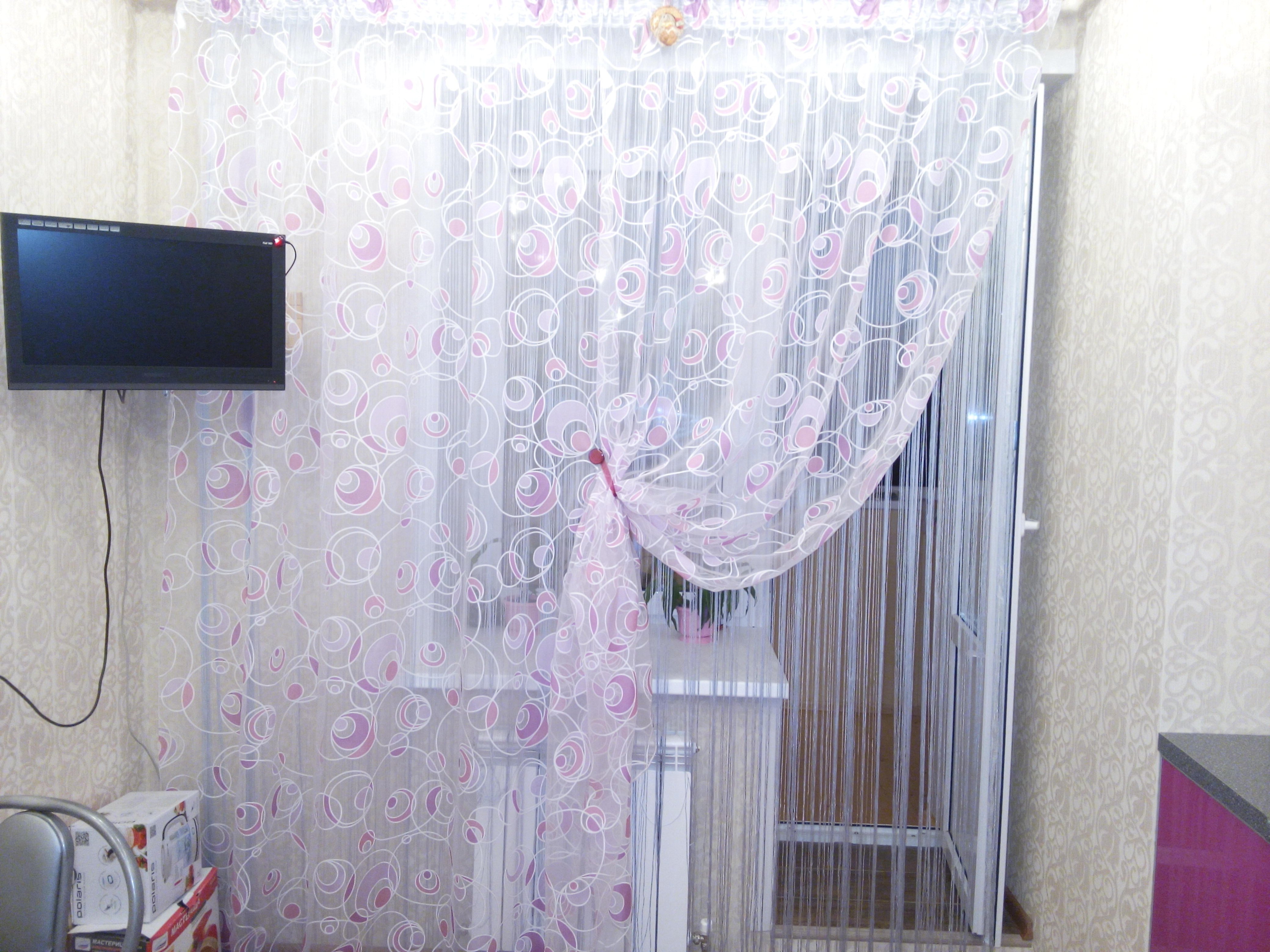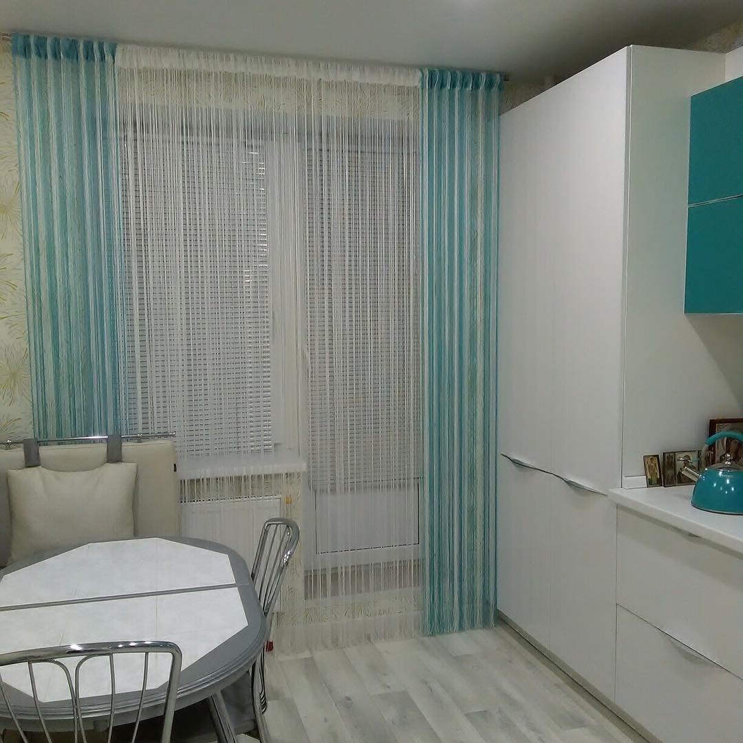 Шторы нити на кухню с балконной дверью