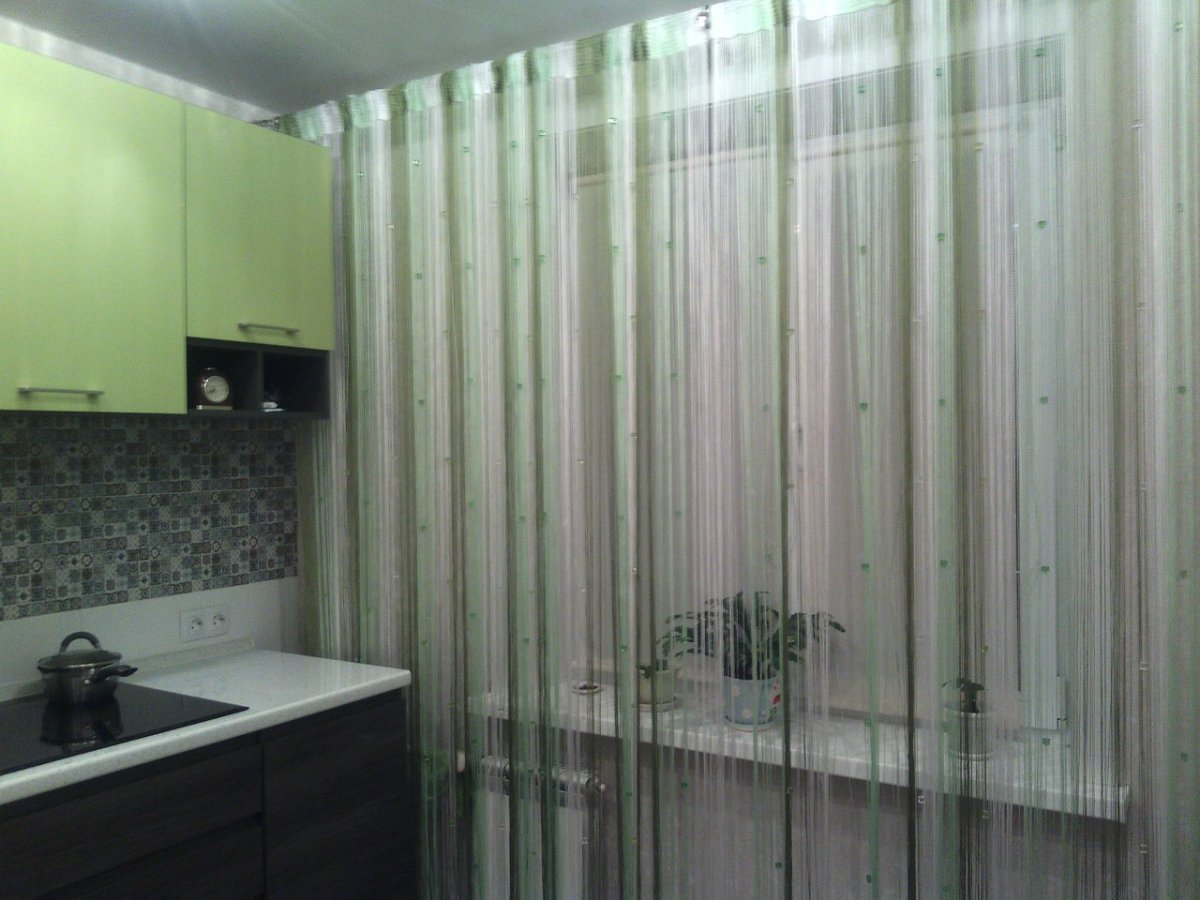 Нитяные шторы на кухню
