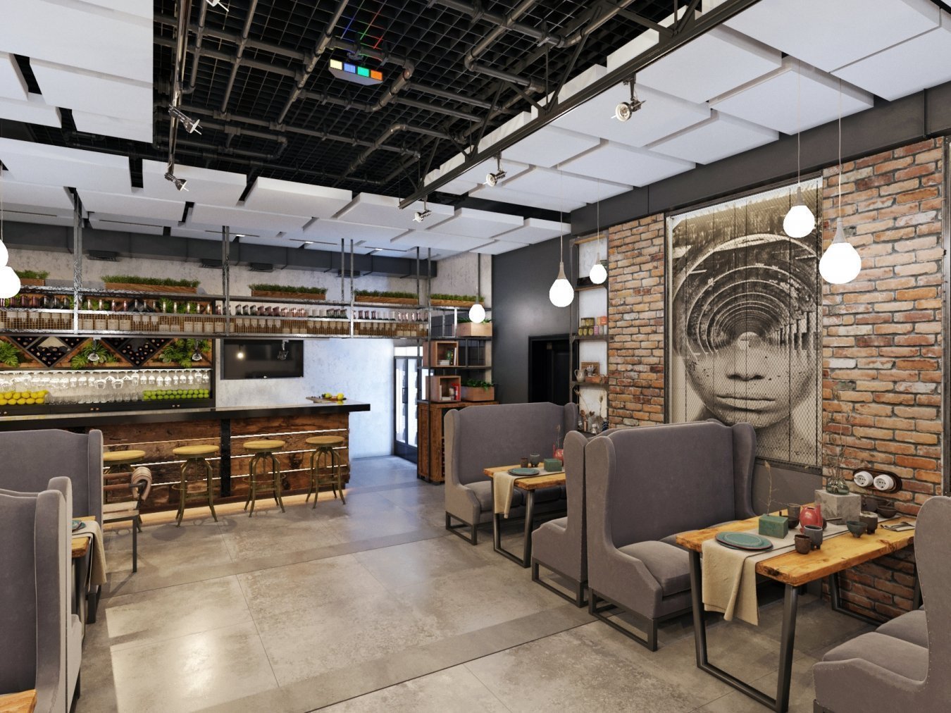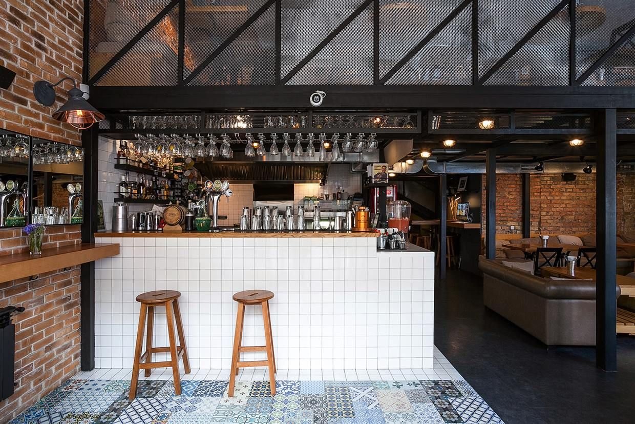 Стиль Индастриал лофт в баре