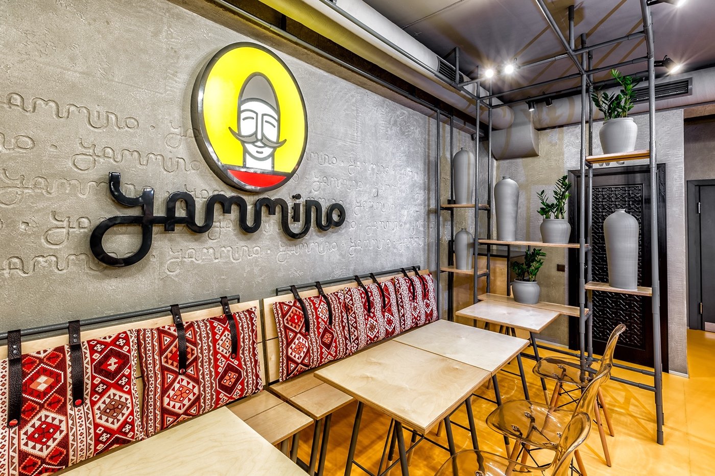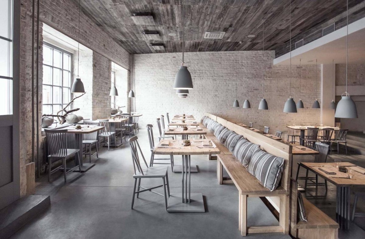 Интерьер ресторана в стиле брутализм