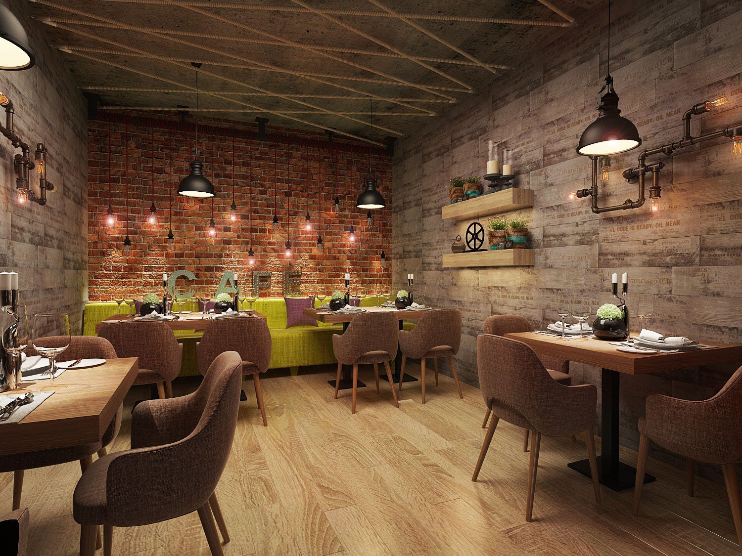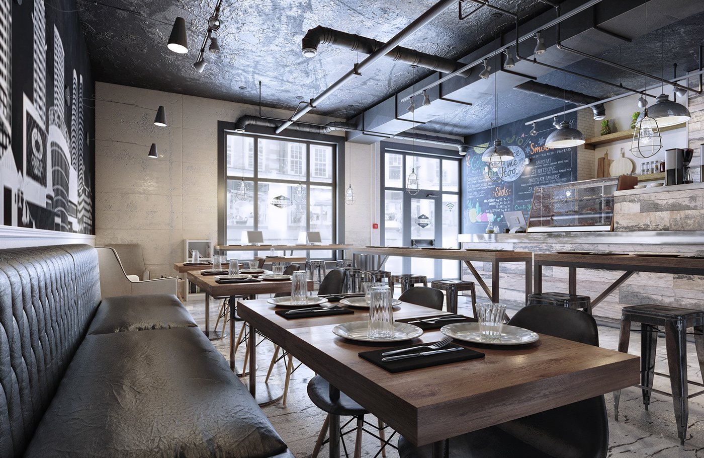 Стиль Индастриал в интерьере кафе