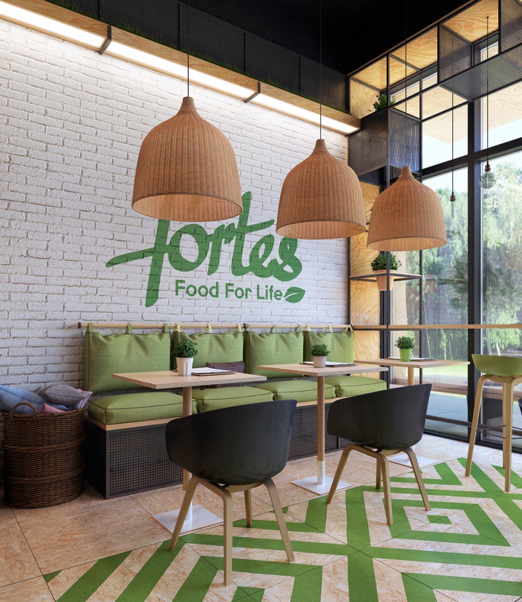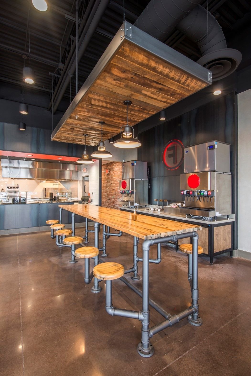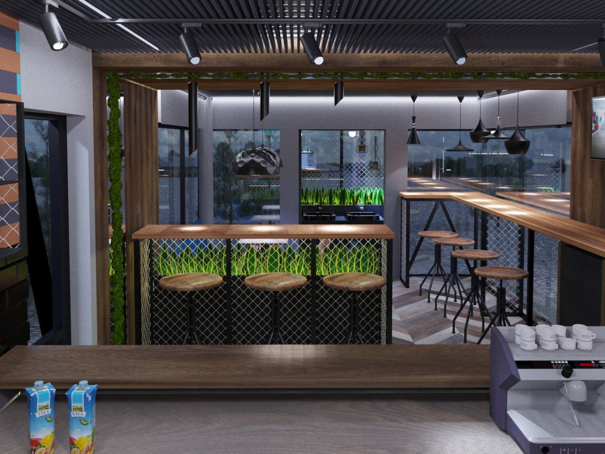 Интерьер в стиле лофт для фаст фуда