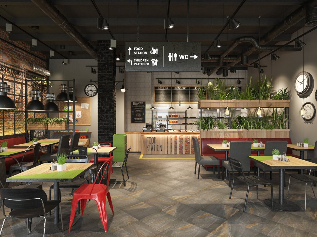 Стиль лофт в кафе быстрого питания