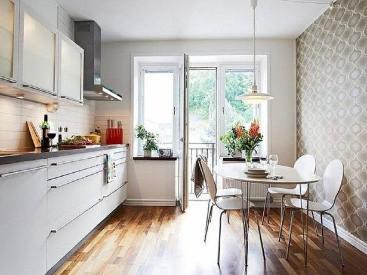Интерьер кухни 11м2 с выходом на балкон