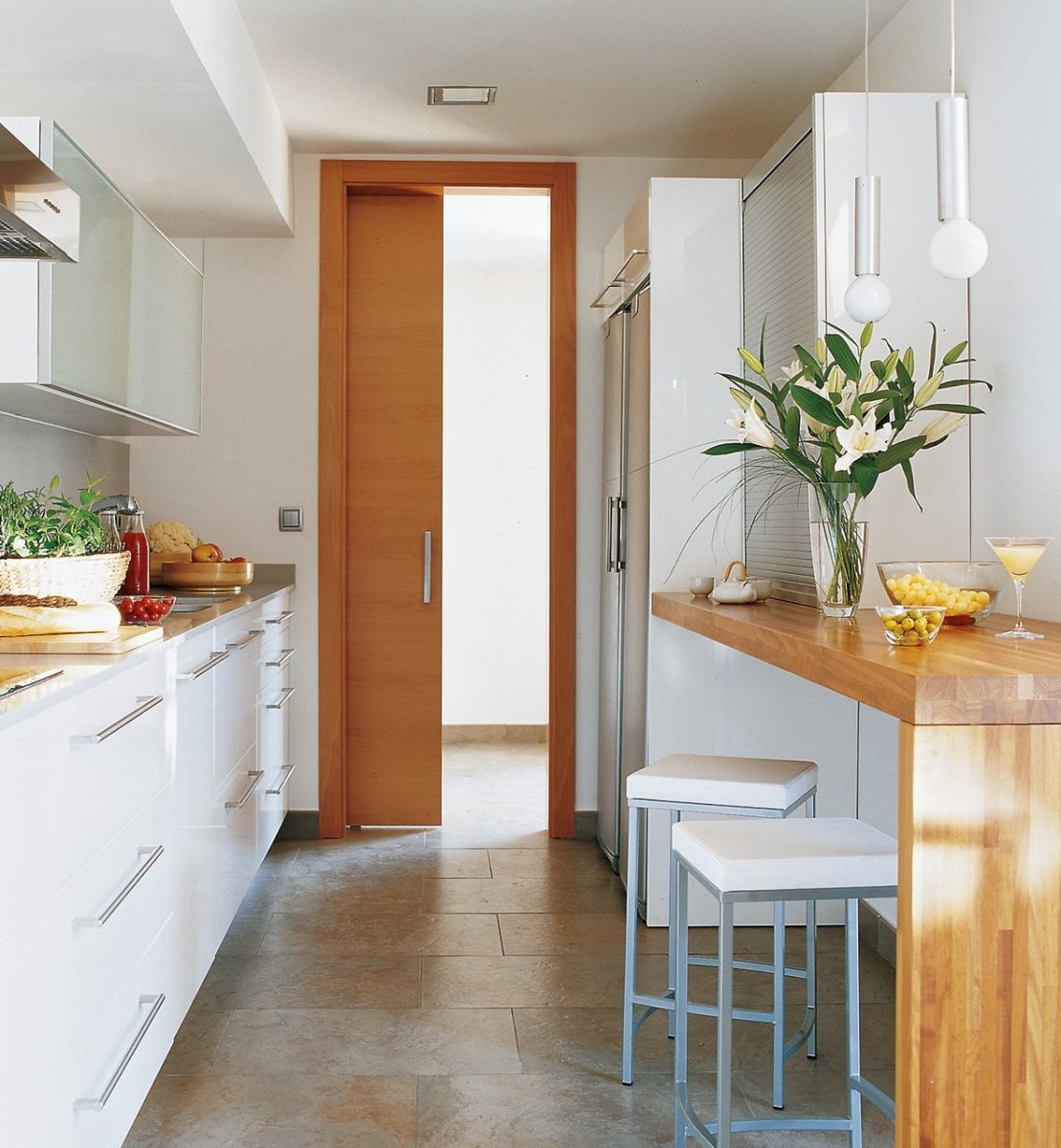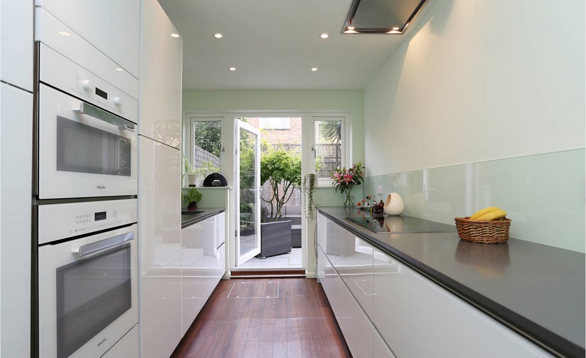Интерьер узкой кухни