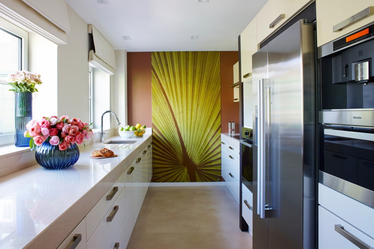 Интерьер маленькой проходной кухни