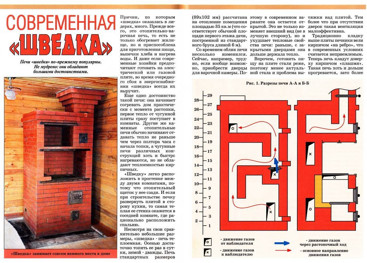 Печь шведка 3 на 3.5 кирпича отопительная варочная