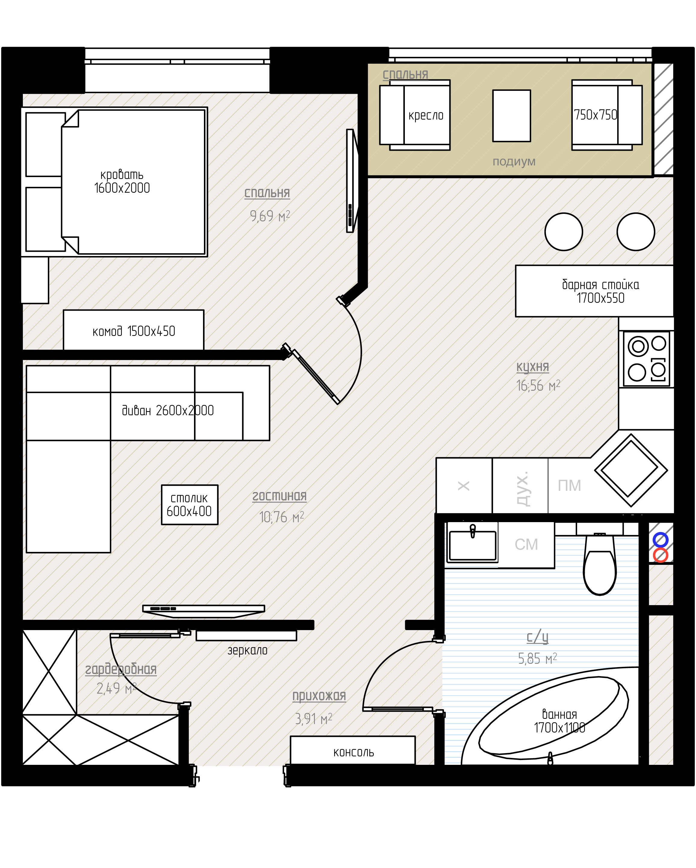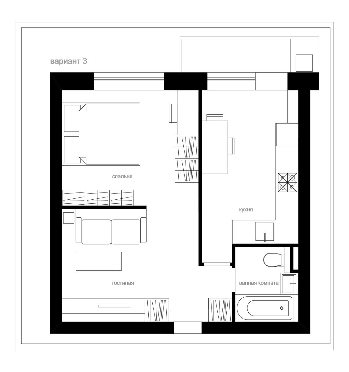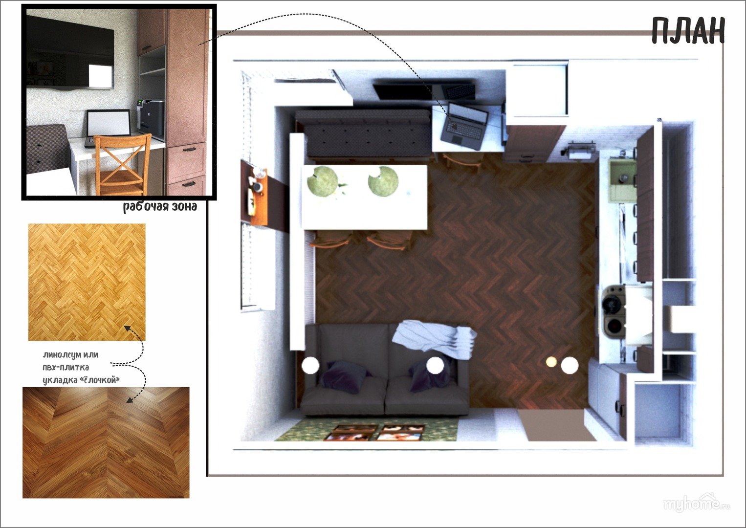 Студия из однокомнатной хрущевки 30 кв.м планировка