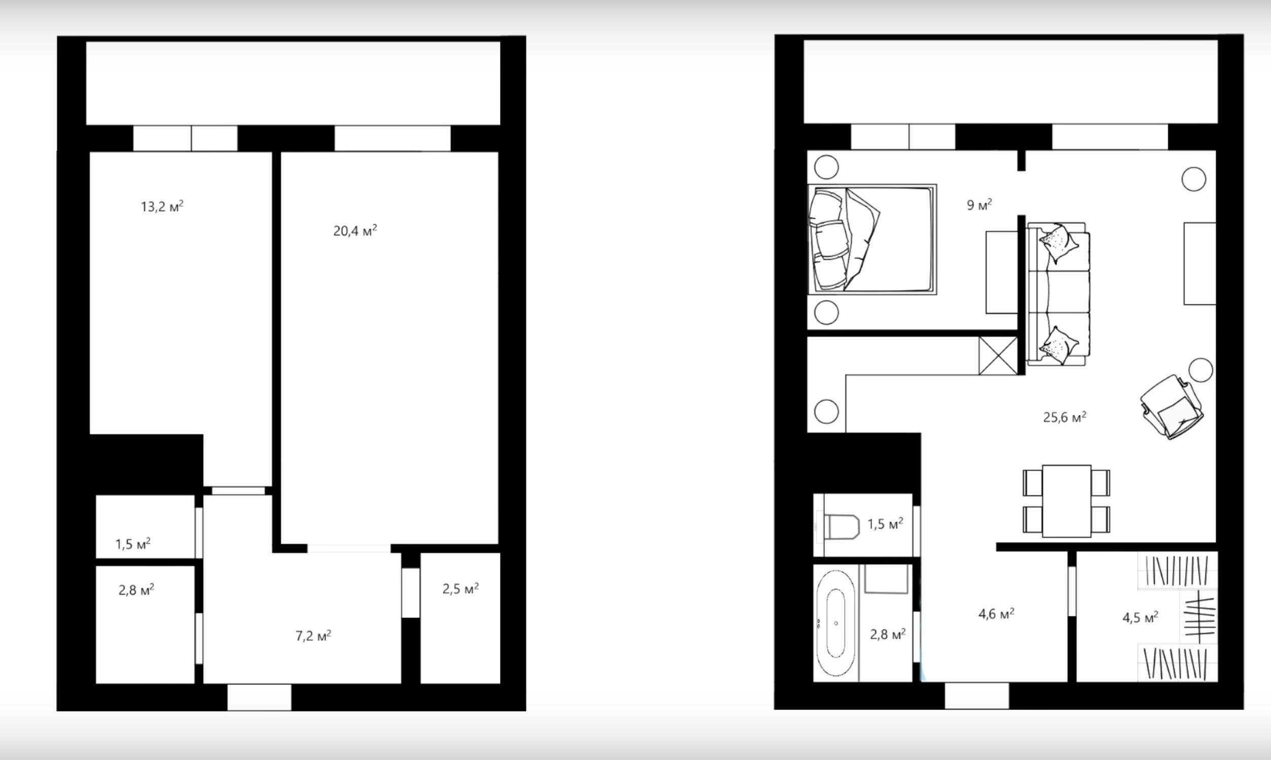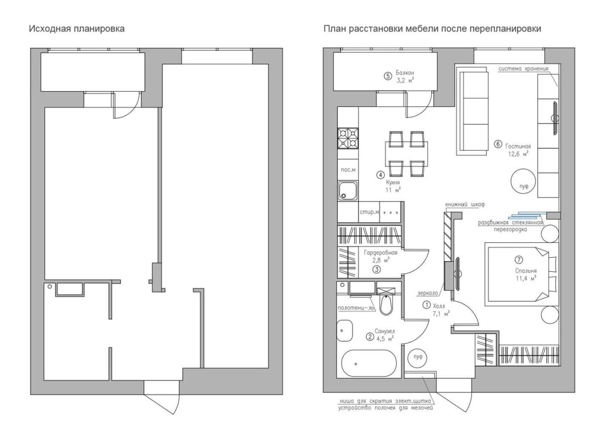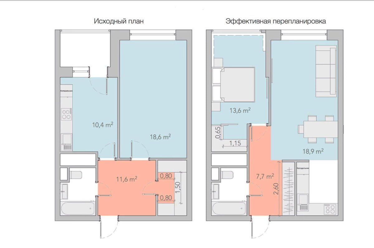 Перепланировка однокомнатной квартиры 30 кв.м в двухкомнатную