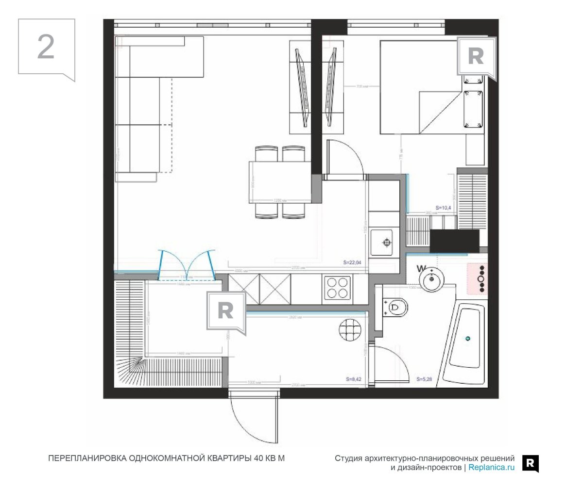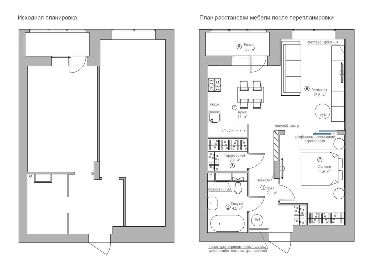 Перепланировка однокомнатной квартиры в двухкомнатную 50 кв.м