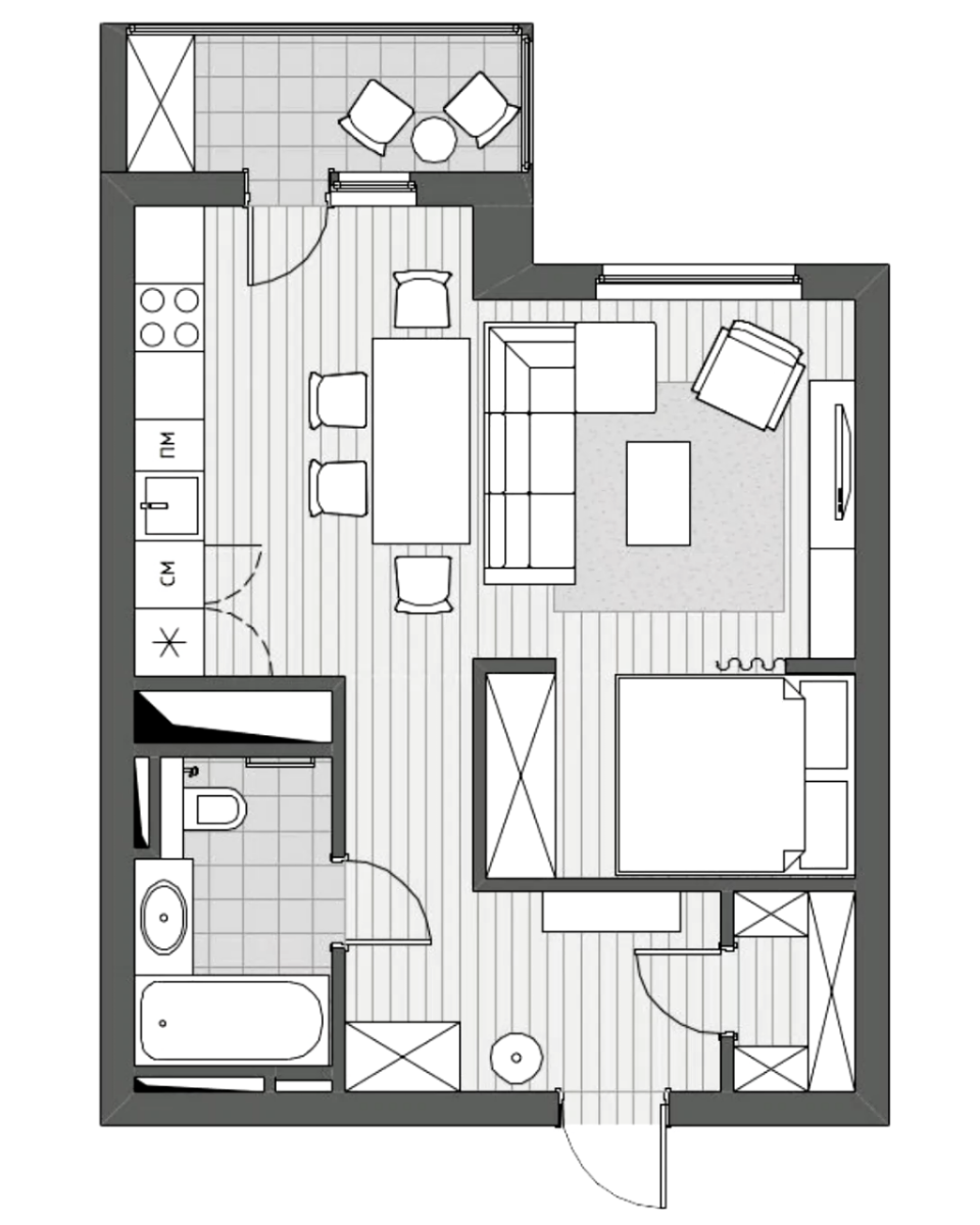 Перепланировка однокомнатной хрущевки 30 кв.м