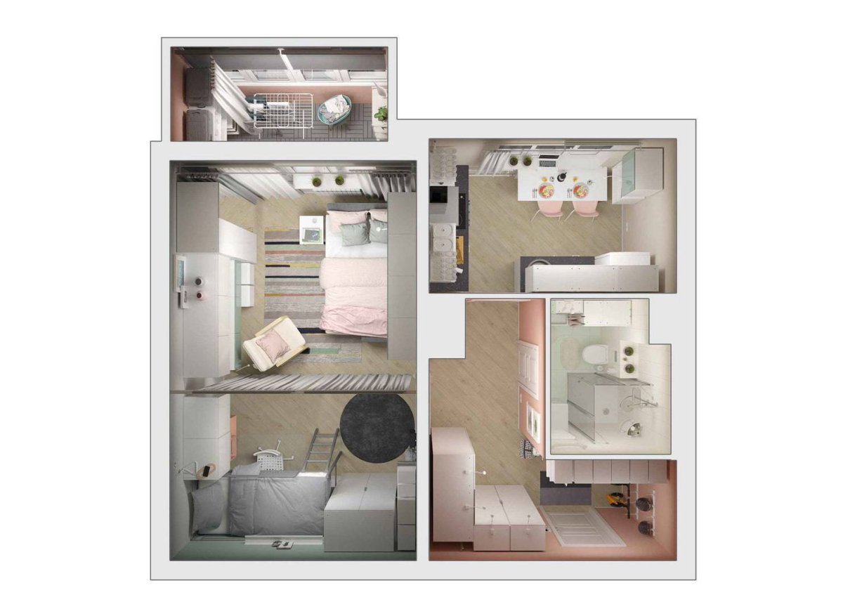 Перепланировка 1 комнатной хрущевки 30 кв.м в двухкомнатную