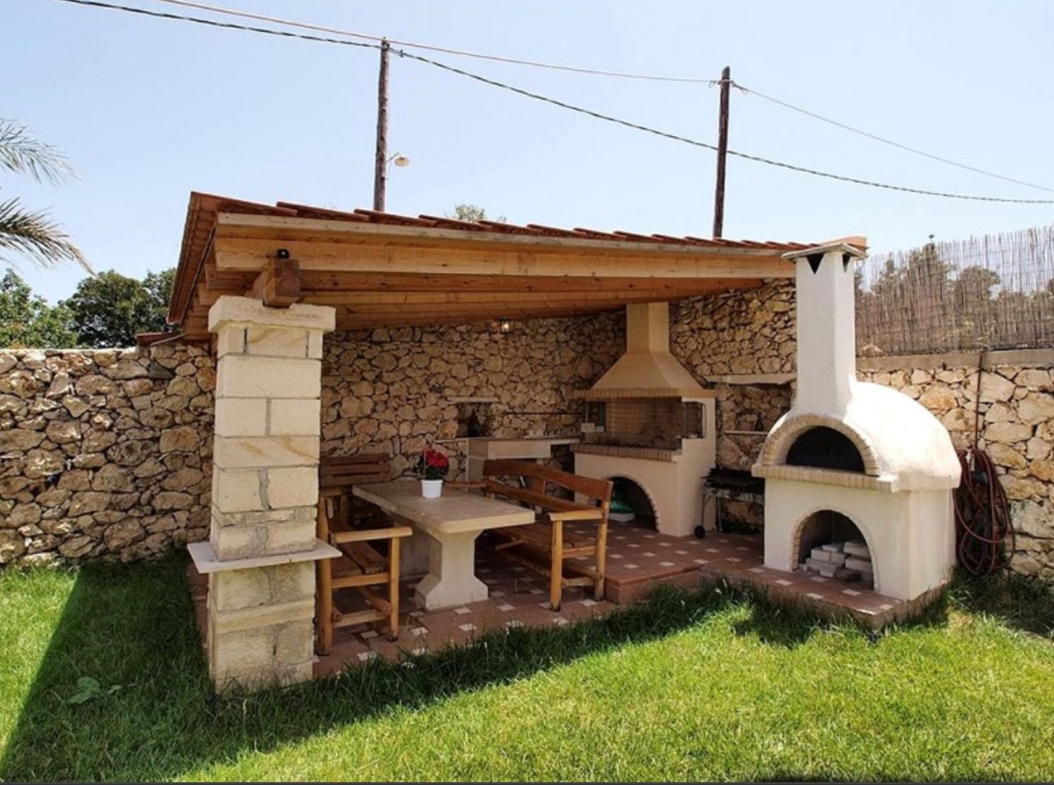 Беседка с мангальной зоной в средиземноморском стиле
