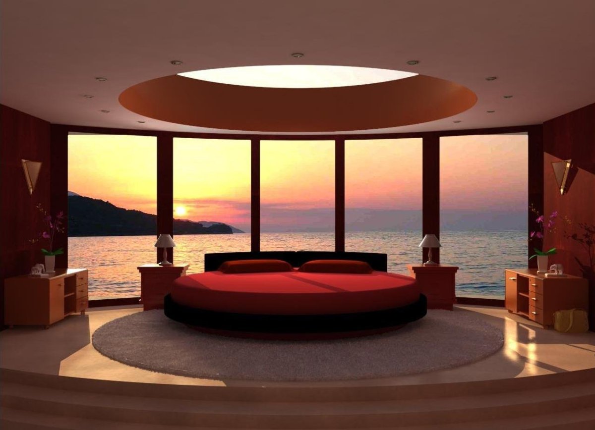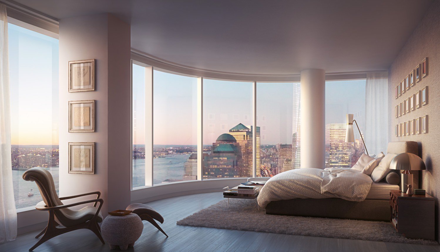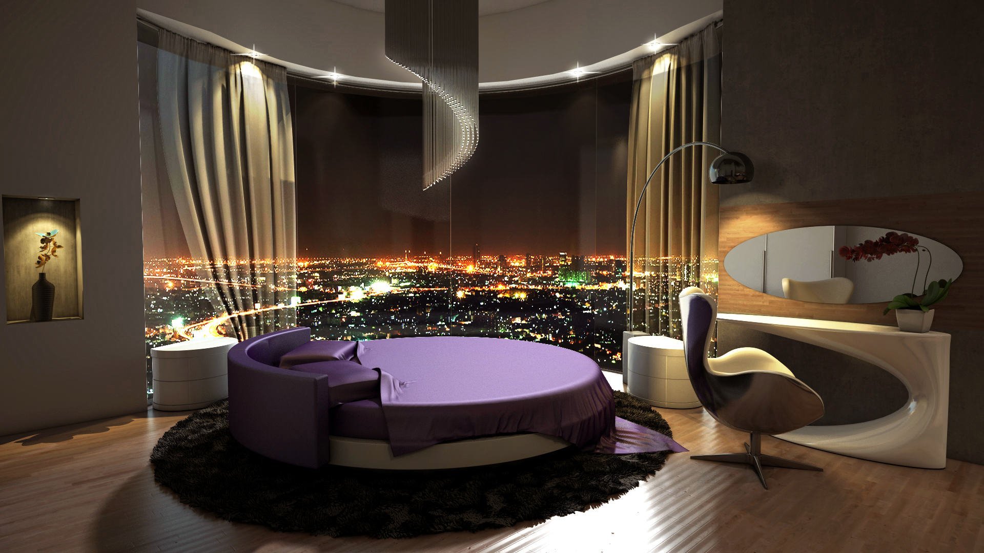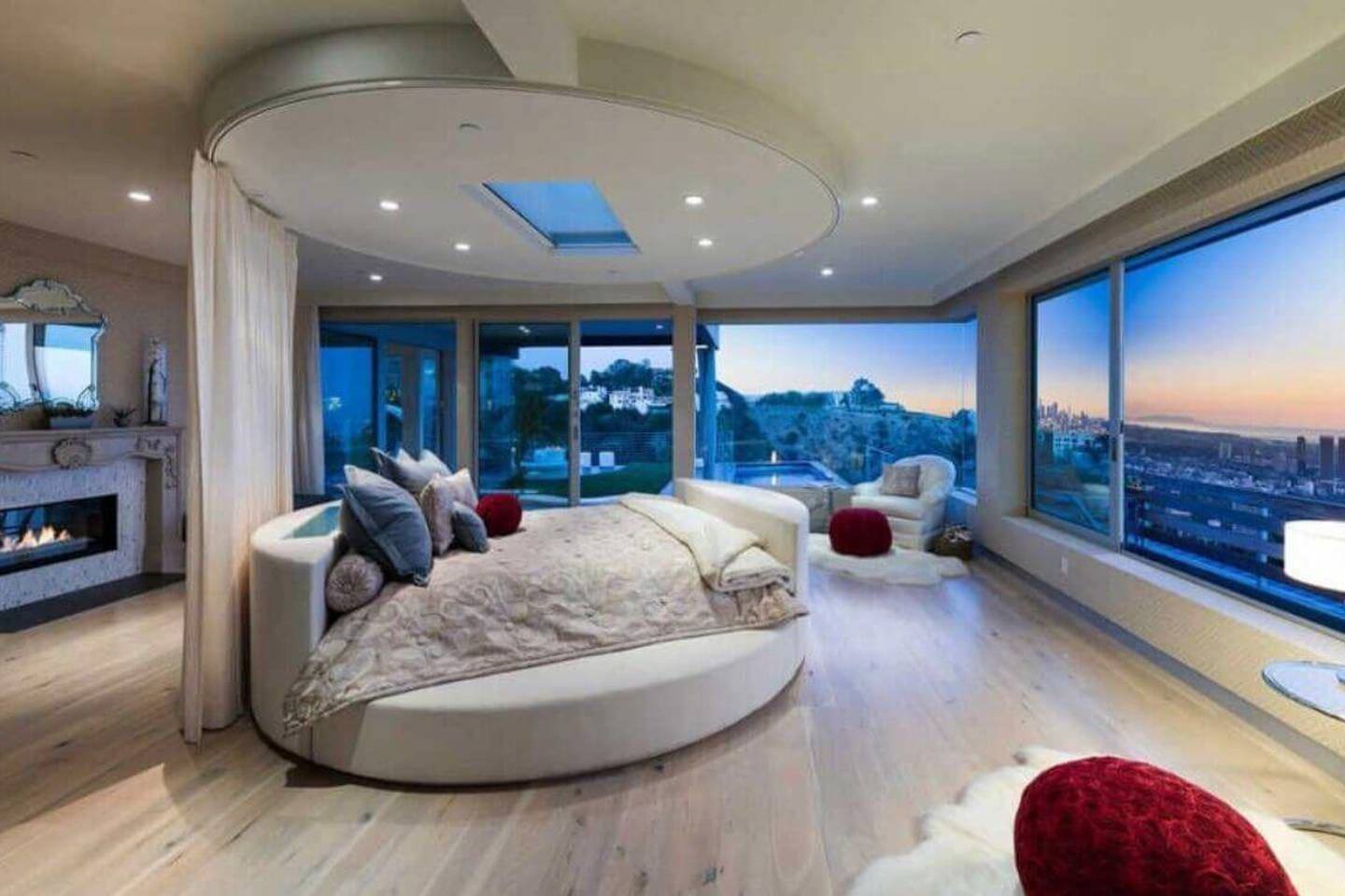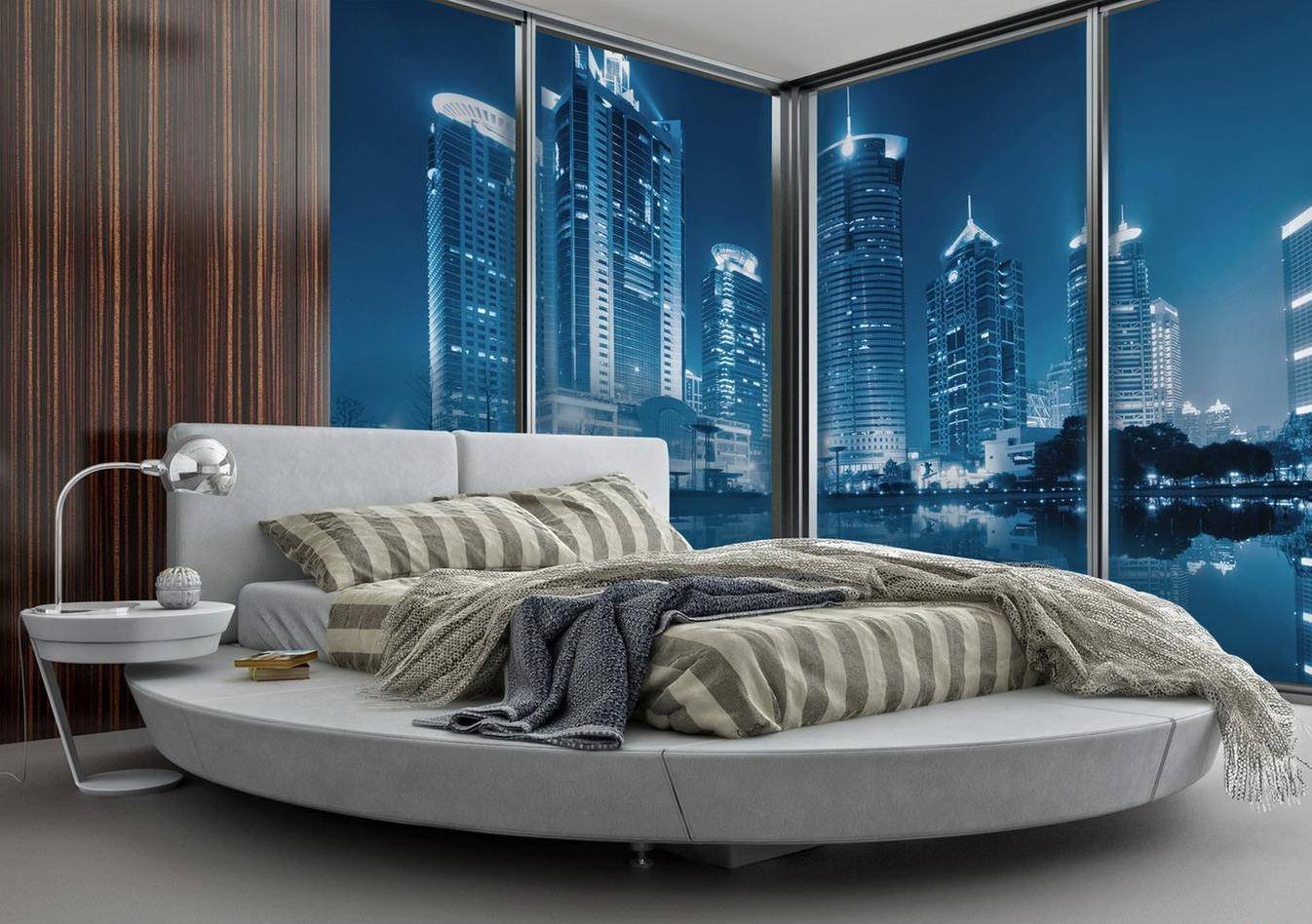 Спальня в пентхаусе в Нью Йорке с круглой кроватью