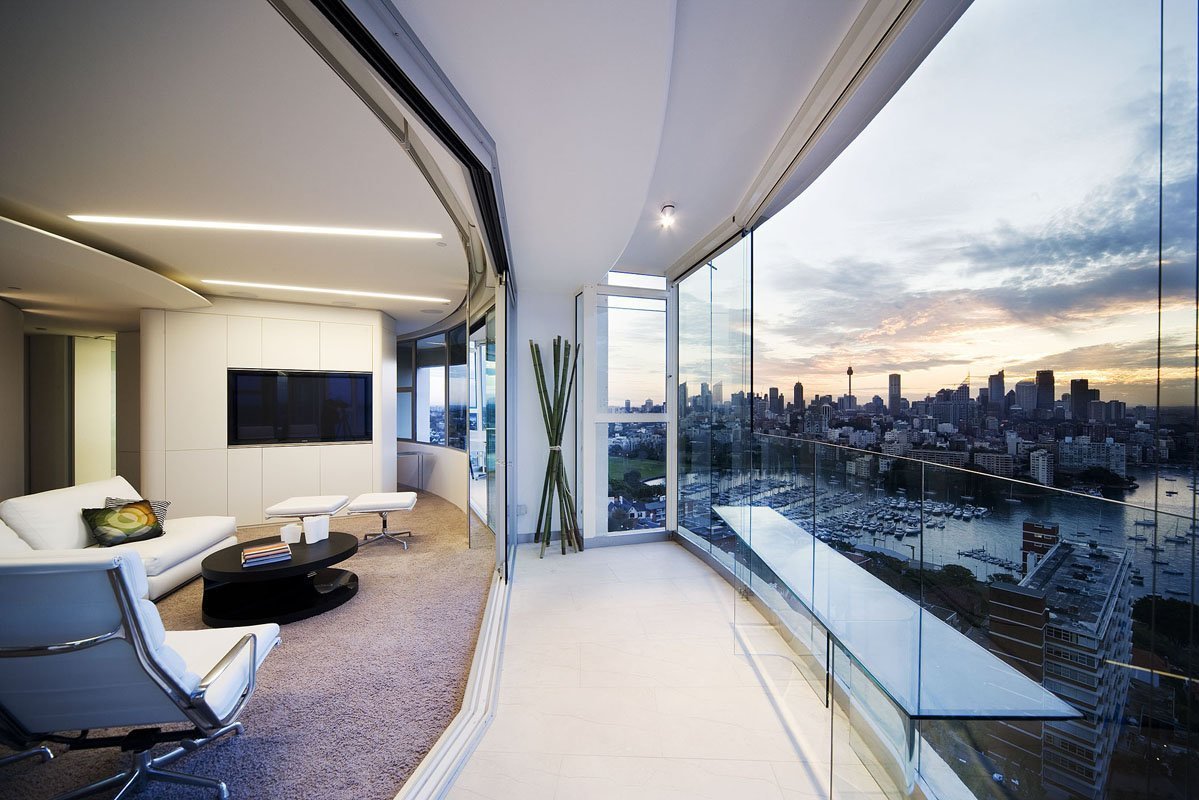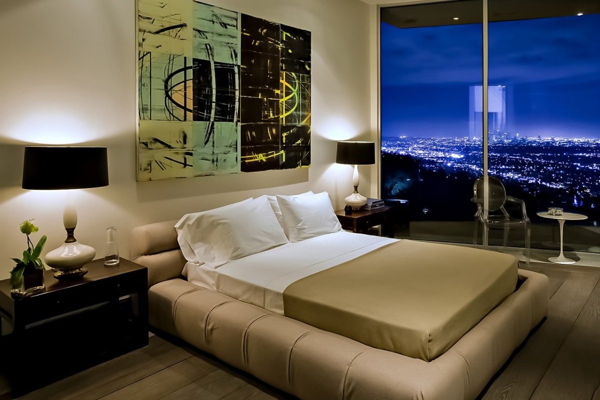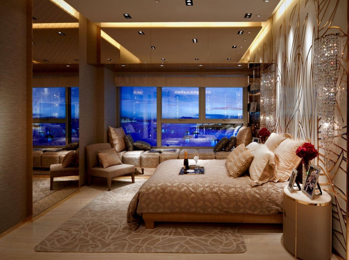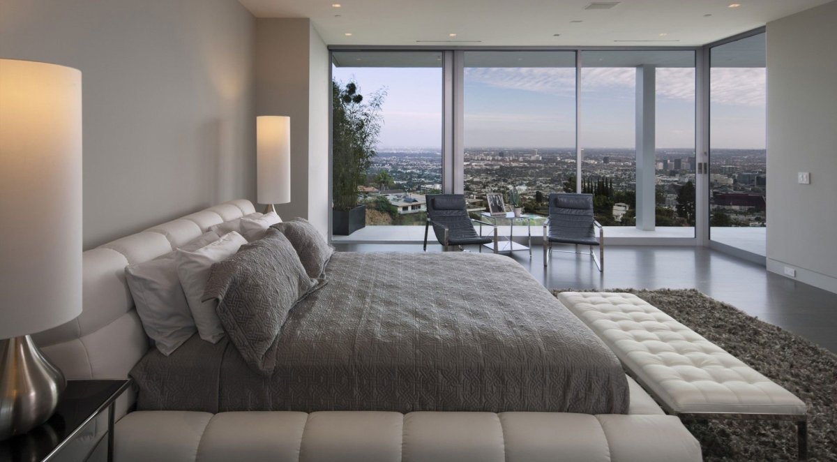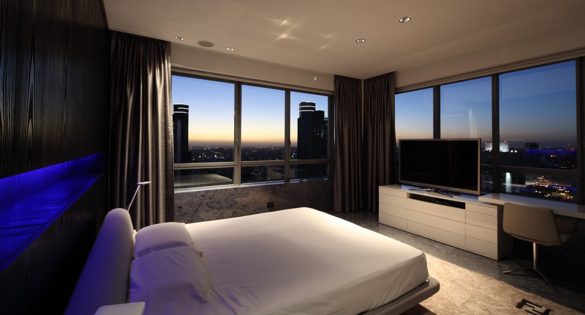 Спальня в пентхаусе в Нью Йорке с круглой кроватью